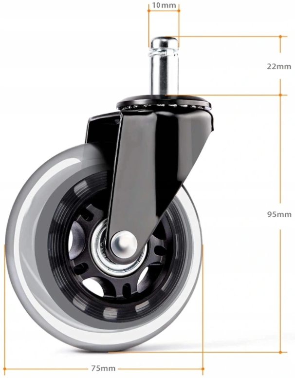 ▶ Колеса были разработаны с учетом максимально возможной универсальности. Благодаря этому мы получили модель, подходящую для офисных стульев, вращающихся стульев, игровых стульев, табуретов, мебели и т. д.