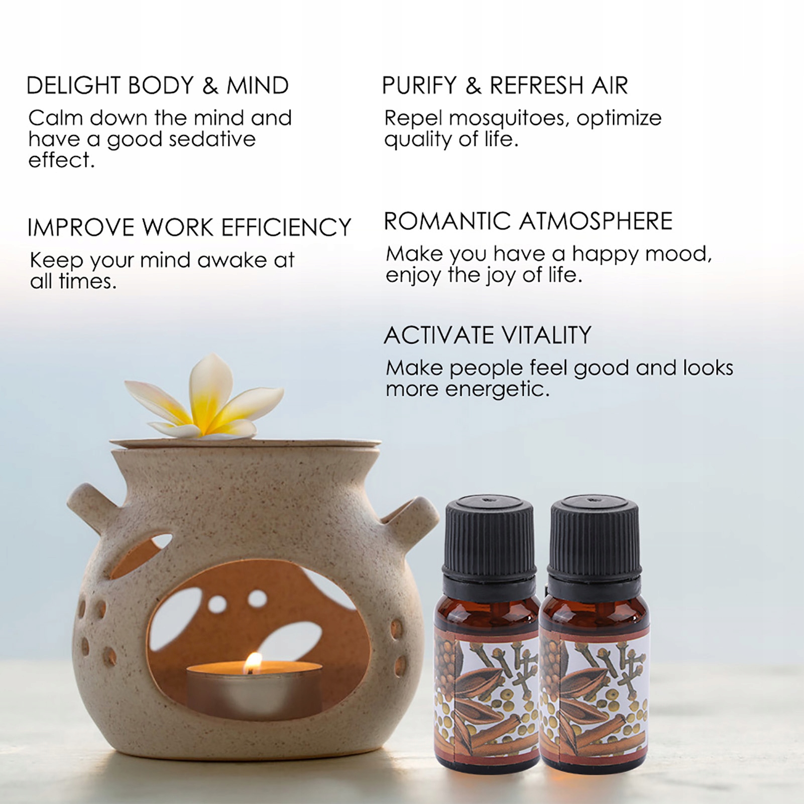 7. Может использоваться в печи для ароматерапии, ароматической лампе, шкафу, увлажнителе воздуха, ежедневной уборке и т. д.