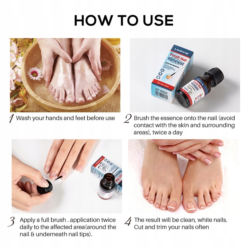 ⏺【 Эффекты】: , принимая технику проникновения в молекулярную иглу и совершенно новую формулу, эта сущность для восстановления ногтей может эффективно проникнуть в ногти, восстановить все виды проблем ногтей, смягчить структуру ногтей и восстановить здоровье ногтей. Замочите и смягчите ногти в теплой воде. Используйте файл ногтей, чтобы удалить свободные, пустые и утолщенные детали и протрите грязь и примеси (не используйте чрезмерную силу, чтобы избежать повреждения подшипника ногтей). Нанесите 3-5 капель эссенции, чтобы восстановить ногти на ногте, подождите, пока она не будет поглощена. Мы рекомендуем использовать его два раза в день, день и ночь. Для постоянных гвоздей или тех, чья формация занимает больше времени
