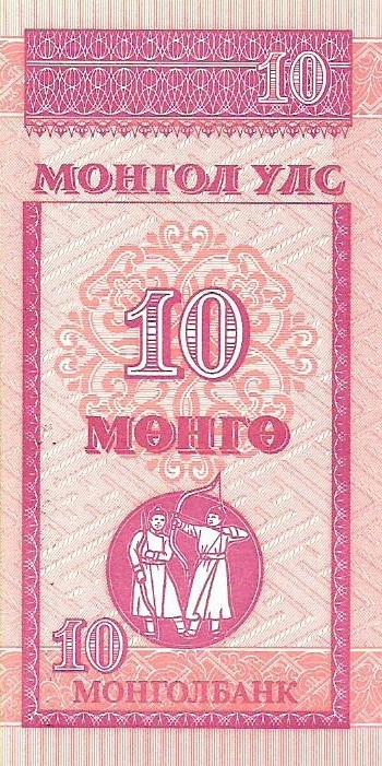 - Номинальная стоимость: 10 мёнго монгольских
