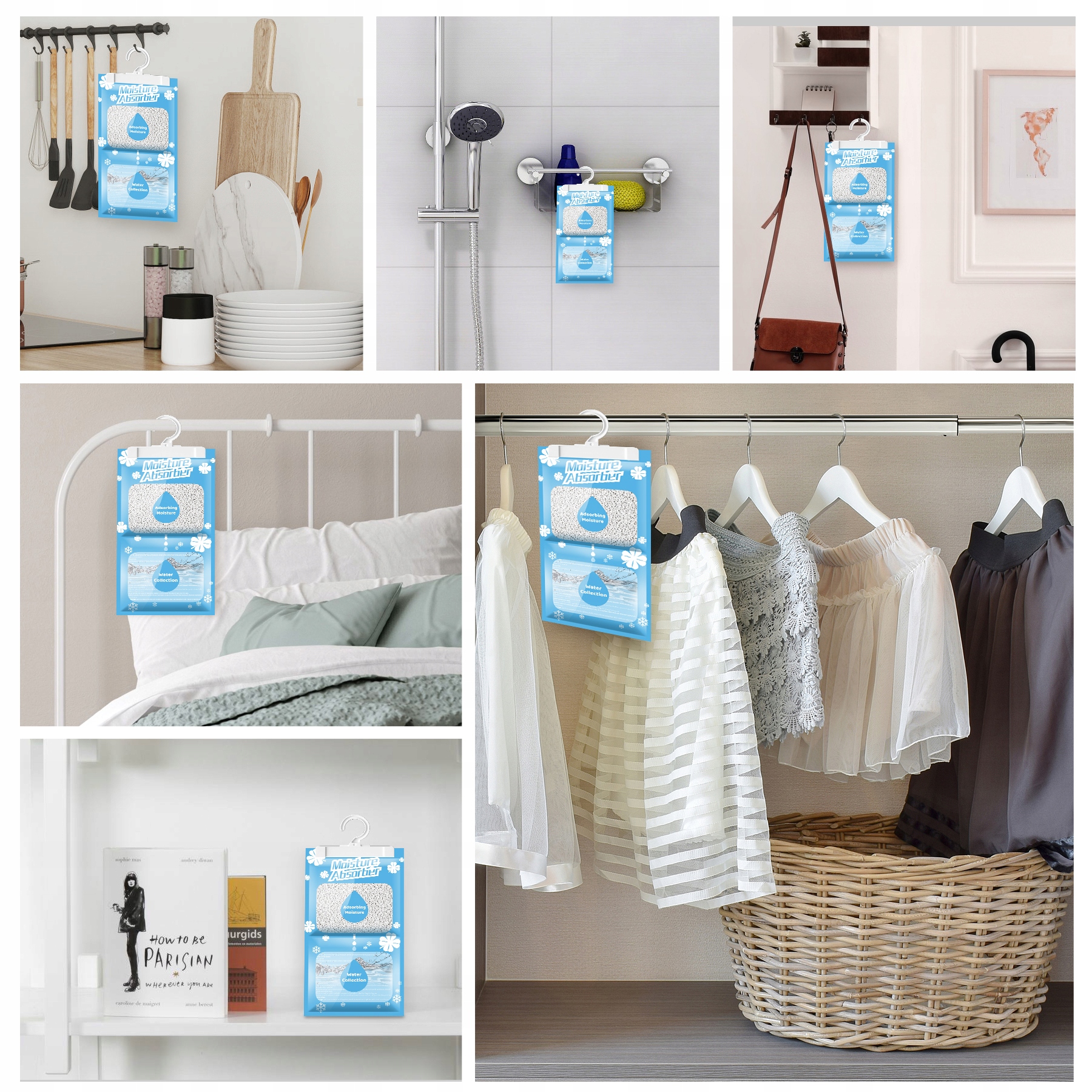 Эти комплекты подвесных осушителей лучше, чем традиционные шкафы для осушителей, оснащены подвесными крючками для гибкого использования в доме и в ограниченных пространствах, таких как чулан, туалет, ванная комната, кухня, прачечная, кемпер, лодка и подвал. Просто выньте его и повесьте где угодно, и он начнет работать, обеспечивая сухую и комфортную атмосферу.