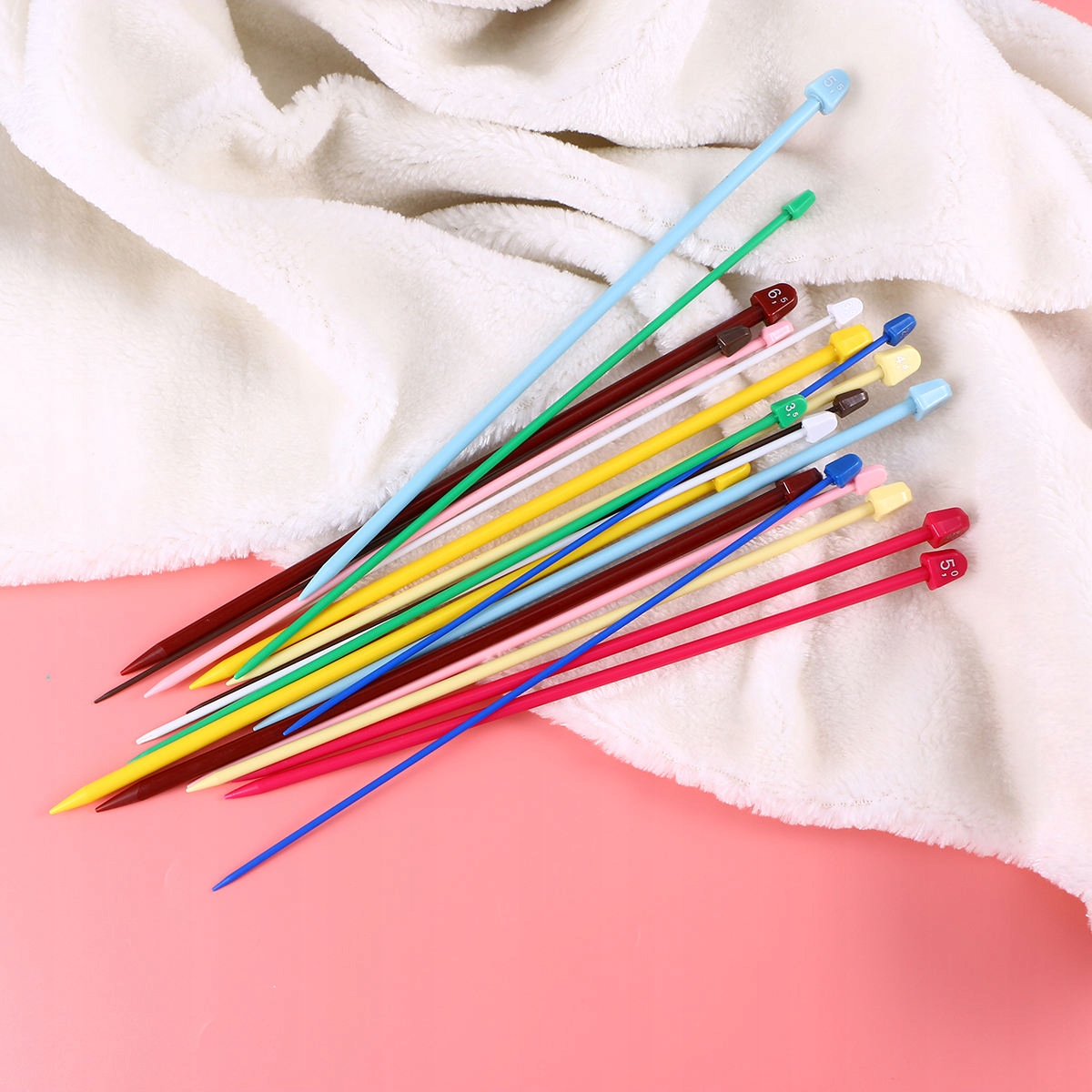 ✅ и разноцветные пластиковые прямые односторонние спицы с крючками.