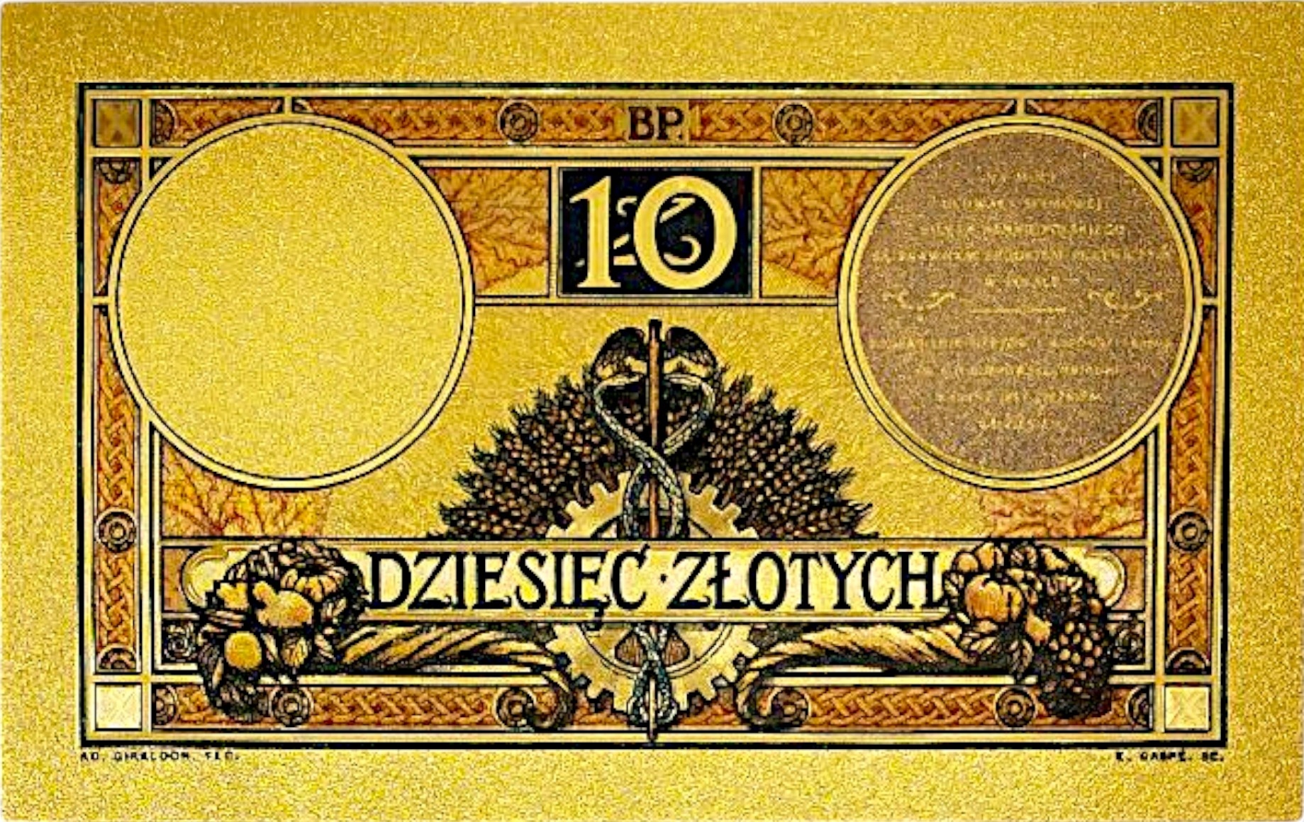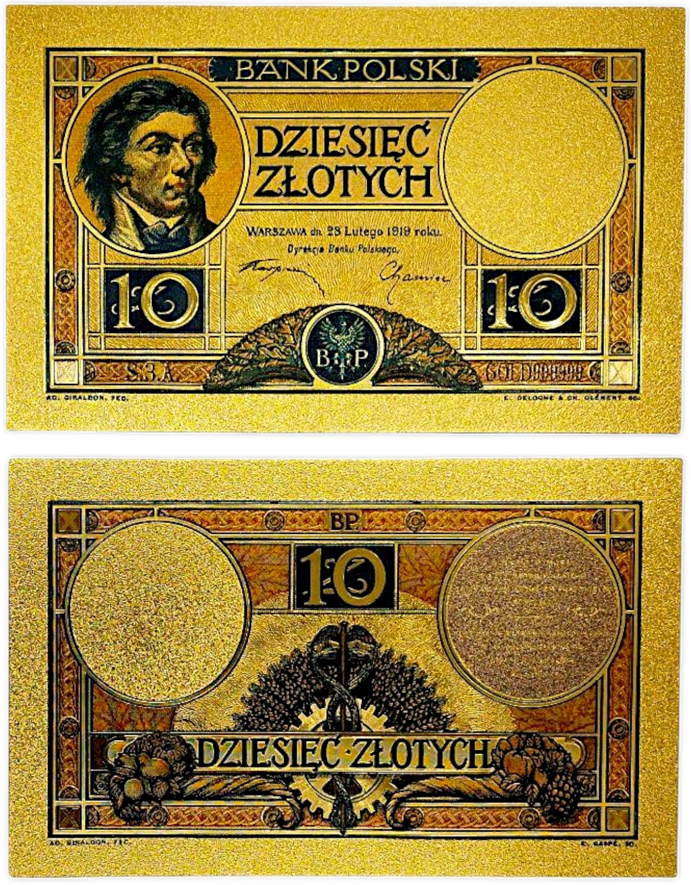 Коллекционная банкнота 10 злотых 1919 года, копия из ПВХ, исторический сувенир UNC