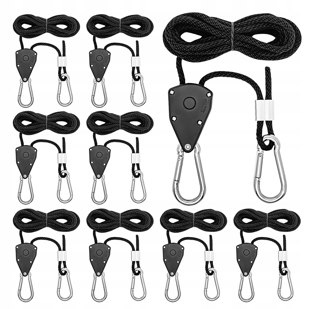 СОДЕРЖАНИЕ УПАКОВКИ: 10 штук регулируемых веревок с крюком длиной 2 метра.