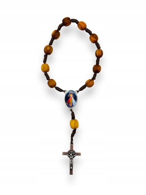 10 РОЗАРІЙ З ОЛИВКОВОГО ДЕРЕВА - металевий хрест MB/JUT