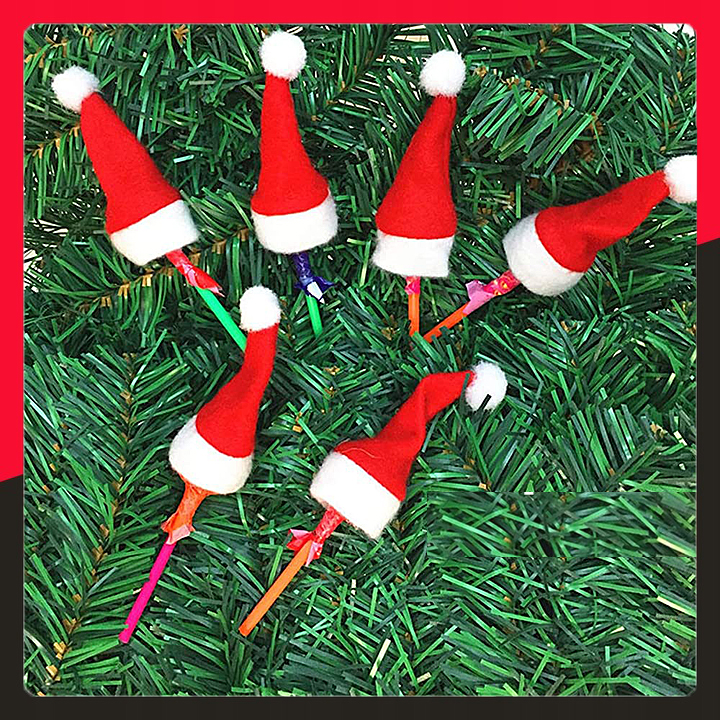 - Рождественский дизайн: классические красные шапки Санты с белой окантовкой и помпоном.