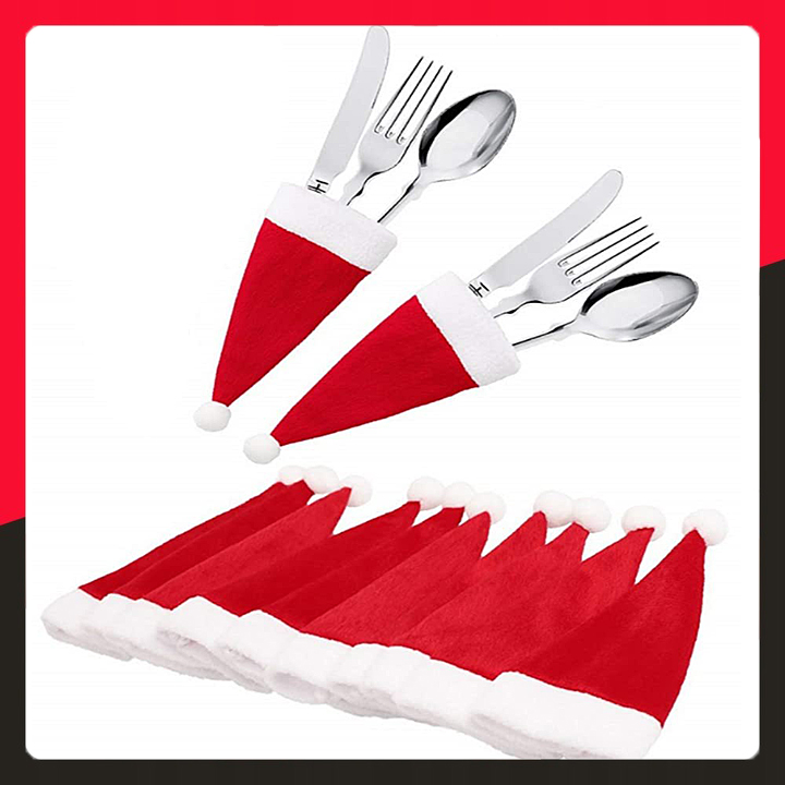 Рождественский футляр для столовых приборов в форме шапки Санты - набор из 10 шт., украшение стола к Рождеству