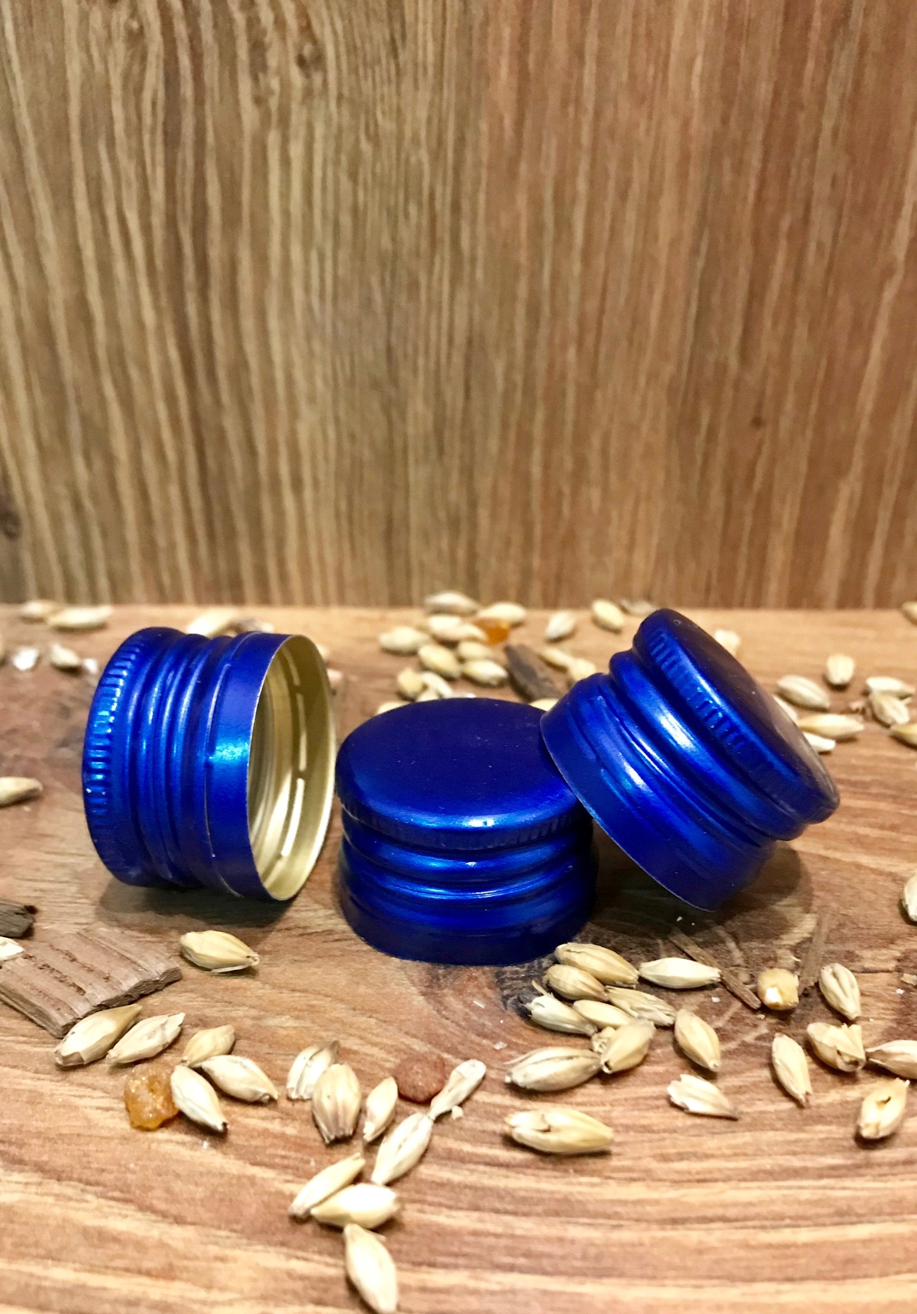 Колпачки алюминиевые для бутылок водки синего цвета.