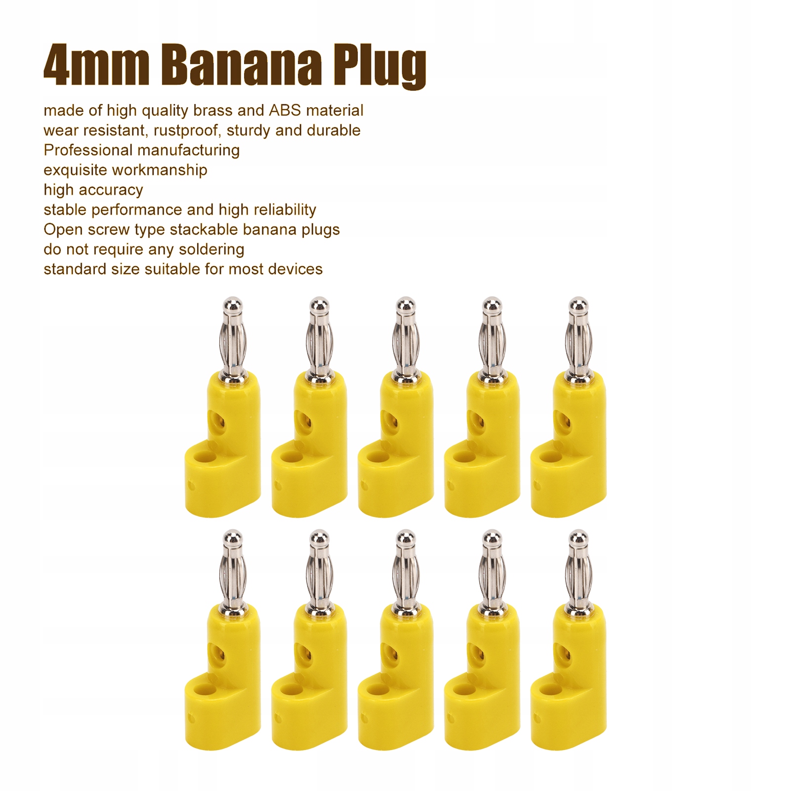 10 шт. 4 мм штабелируемые разъемы-бананы без пайки для аксессуаров безопасности, желтый
