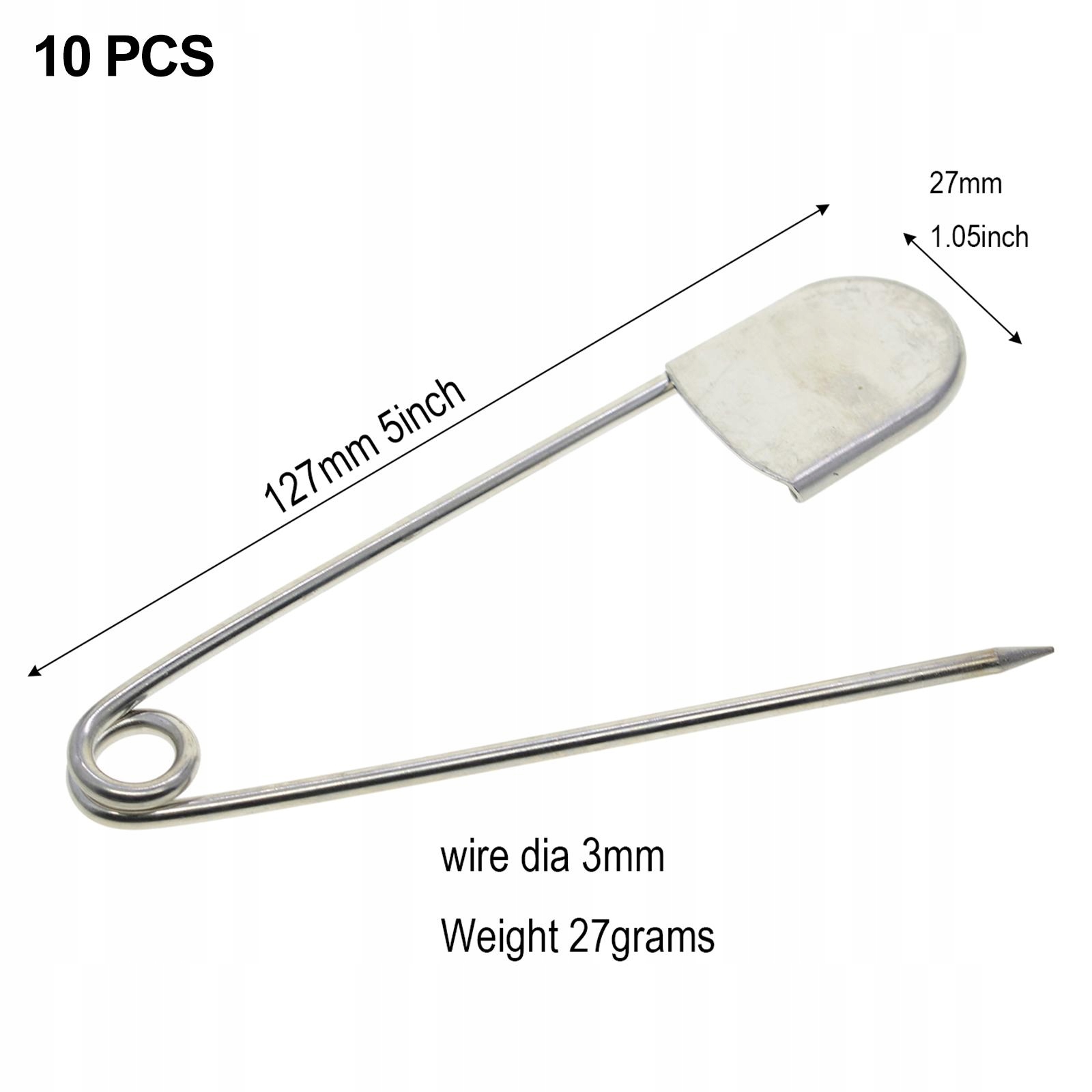 10 шт. 5 дюймів дуже великі шпильки безпеки з нержавіючої сталі Гігантські важкі для