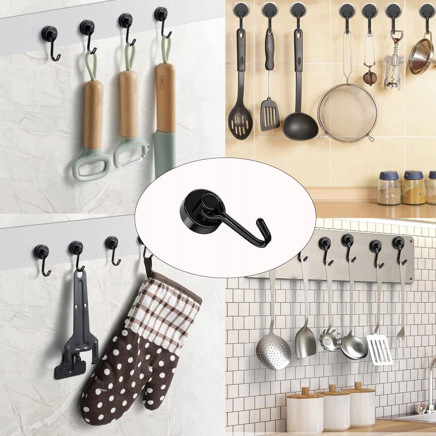 -Их можно использовать для хранения вещей на кухне, в спальнях, шкафах, офисах и холодильниках, а также для подвешивания уличных декоративных ламп, барбекю, садовых инструментов и т. д.