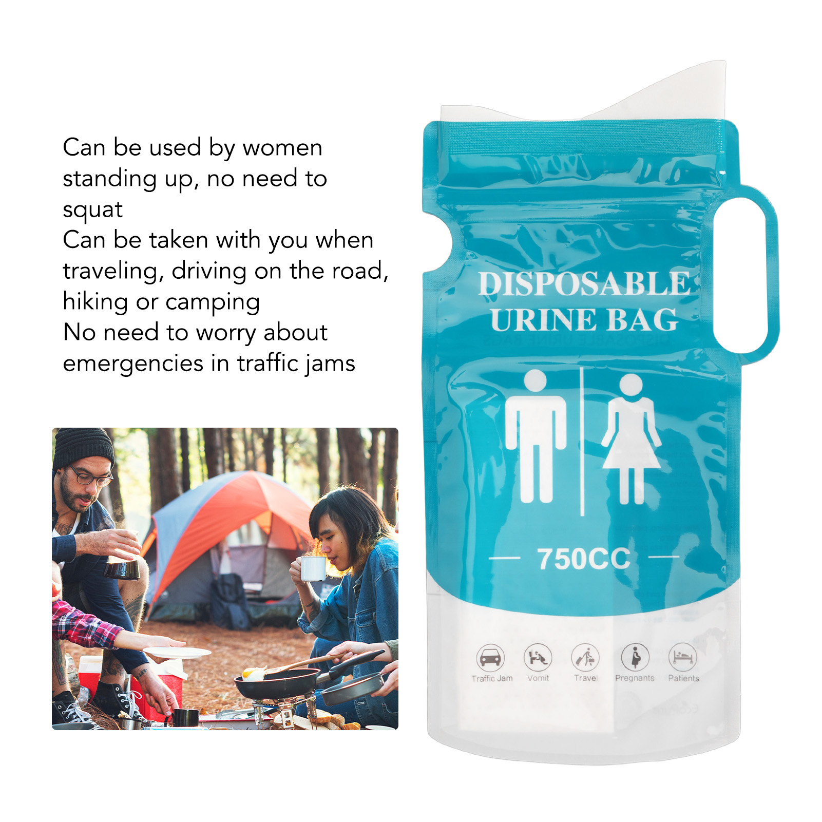 5. [Удобно] Сумка для экстренного писсуара удобна для женщин и может использоваться в положении стоя, без необходимости приседать. Возьмите его с собой в путешествие, поездку в дорогу, поход или кемпинг. Никогда больше не беспокойтесь о нештатных ситуациях в пробках.