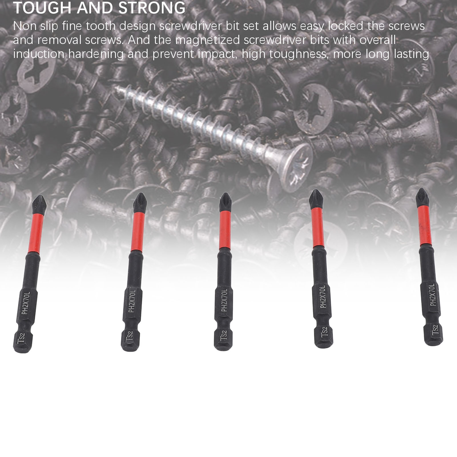 4. Точные и прочные: нескользящие биты pH2, изготовленные из инструментальной стали TS2, высококачественной стали, выдерживающей высокую крутящую силу, точно разработанные нескользящие наконечники для более плотной посадки и кулачка меньшего размера, могут работать с ударными отвертками с высоким кручением
