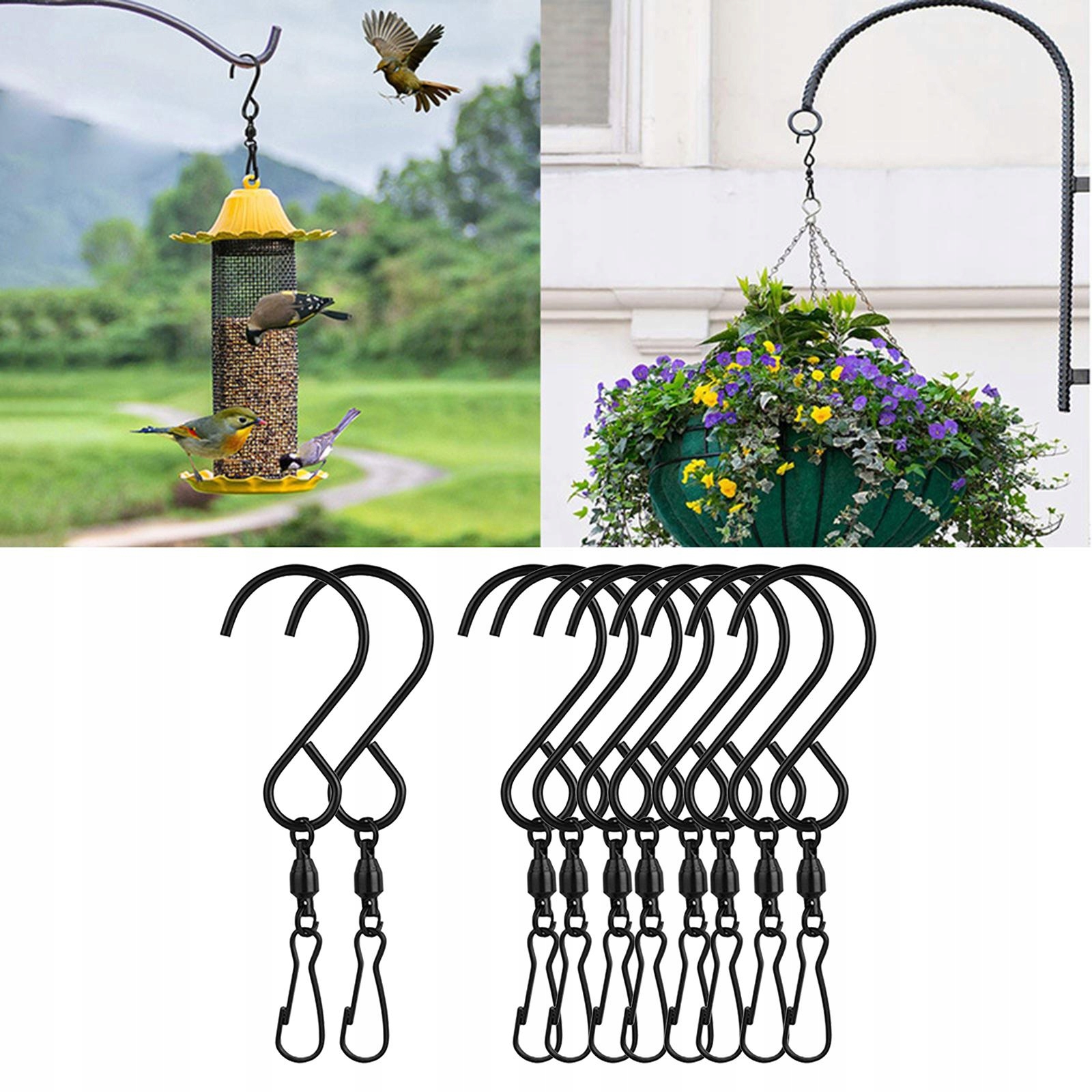10 вращательных крючков из нержавеющей стали в стали S для подвесного ветра, черные