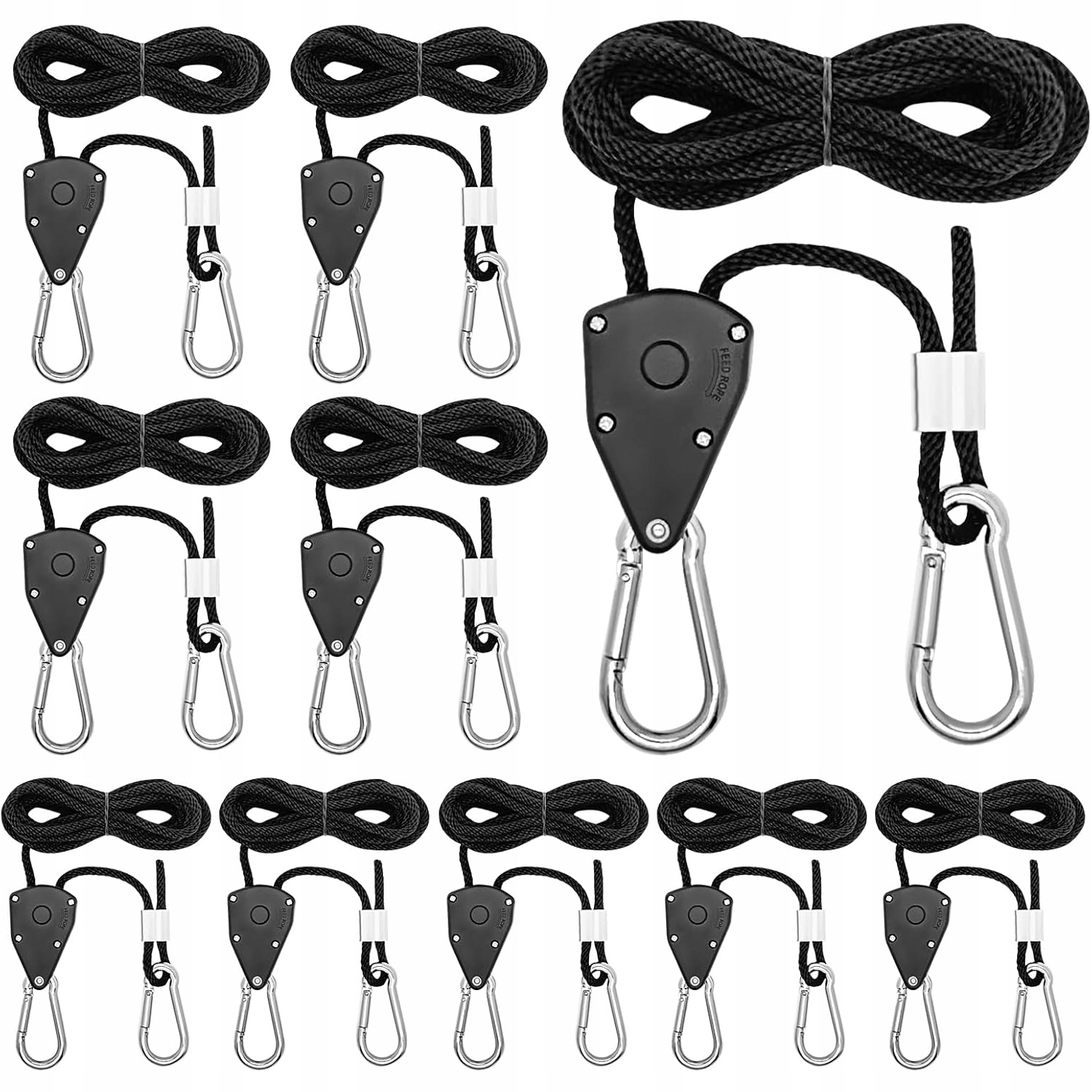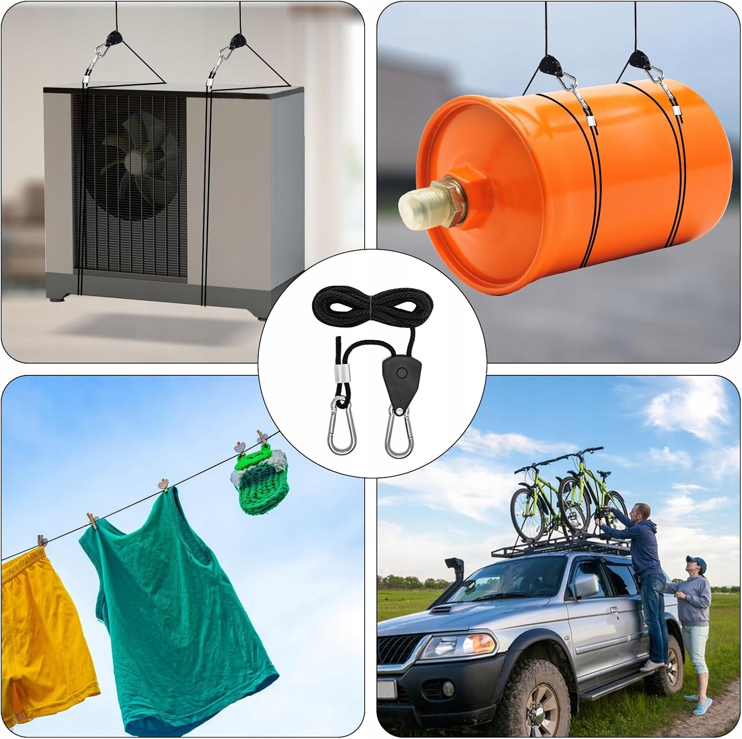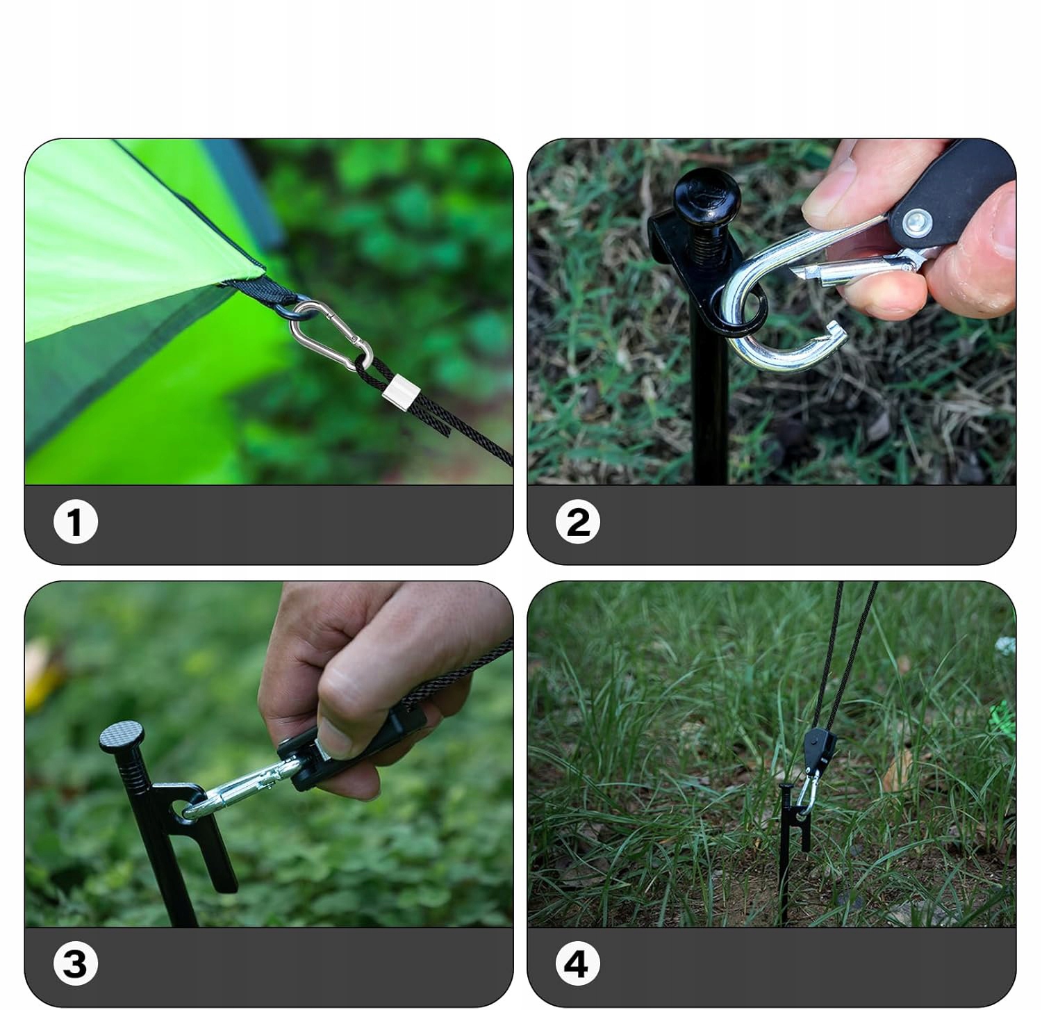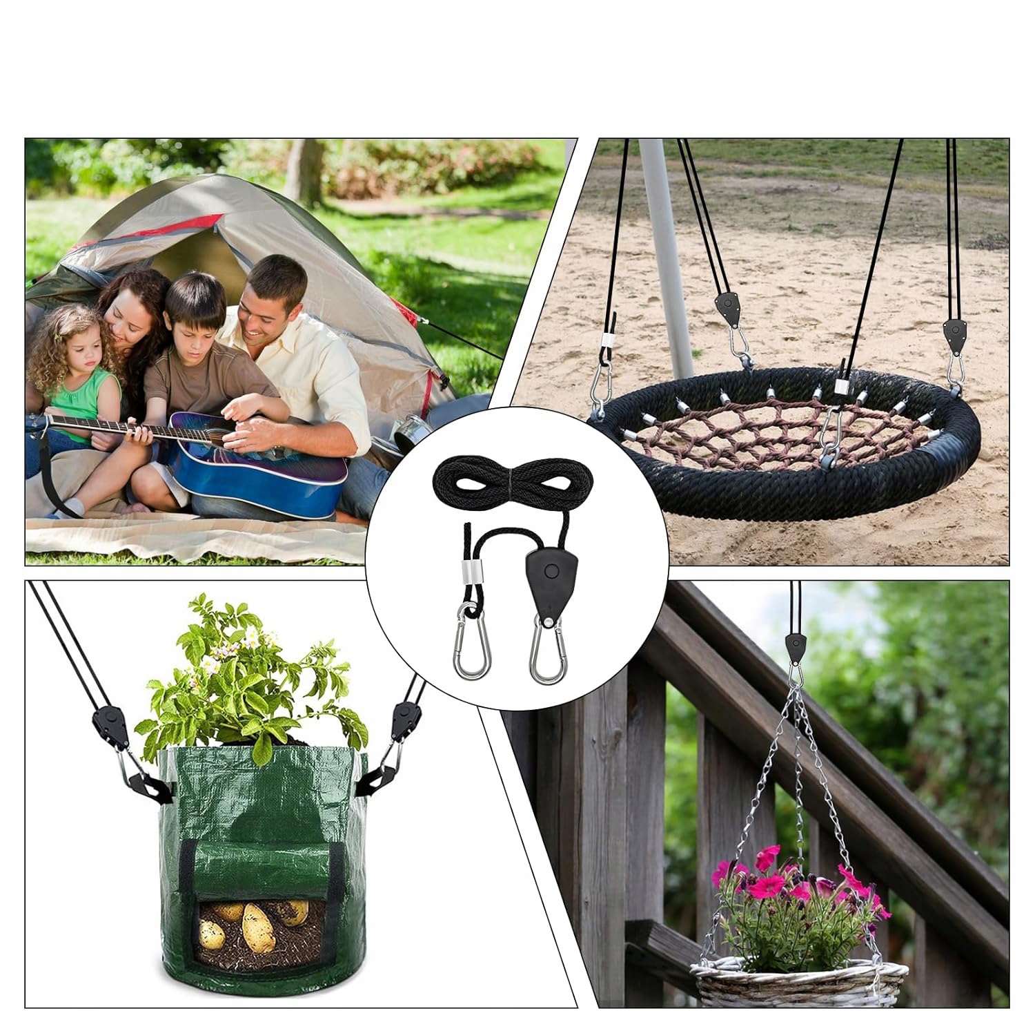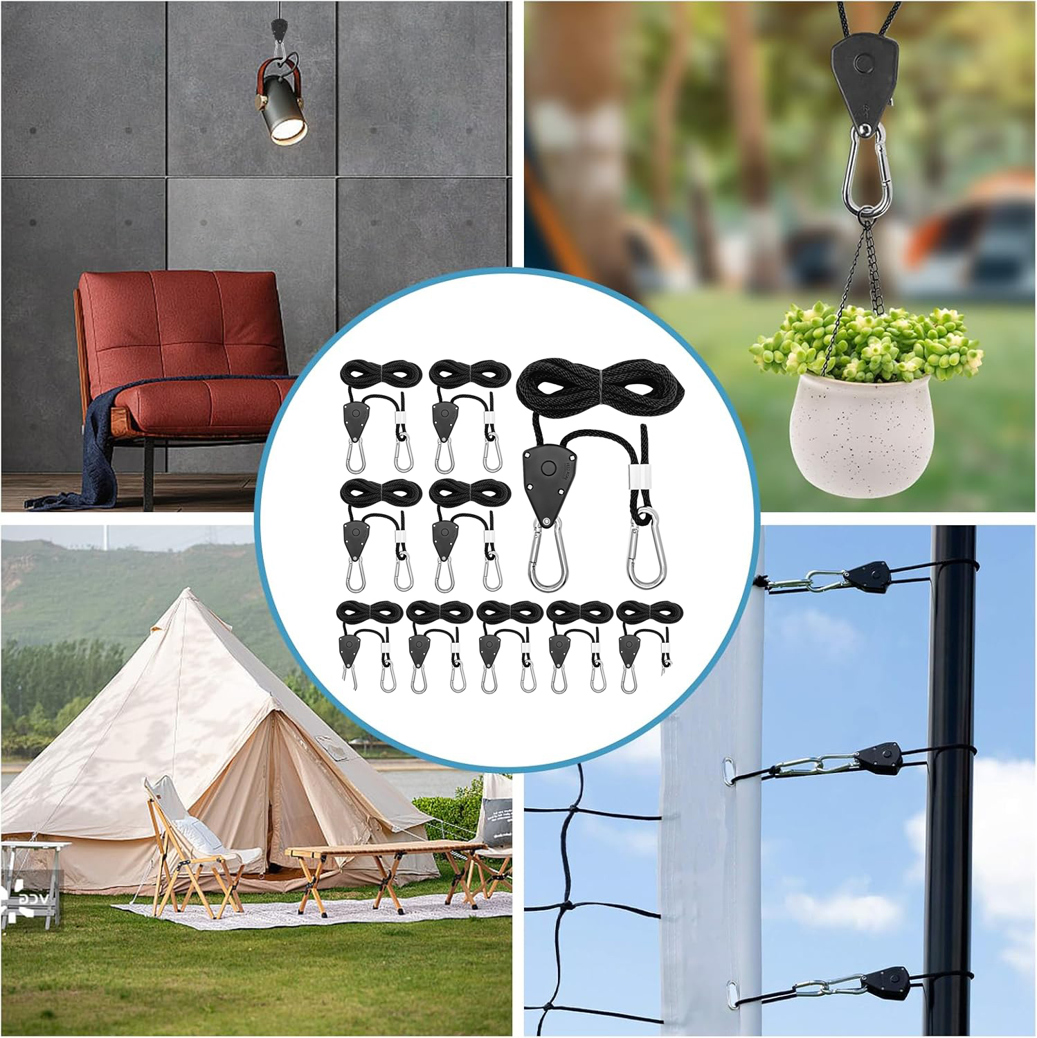 🏕 【Регулируемая】 защелка веревки с крючком имеет прочные металлические шестерни, которые позволяют быстро регулировать и блокировать веревку. Чтобы отрегулировать высоту подвесного объекта, просто потяните свободный конец веревки.