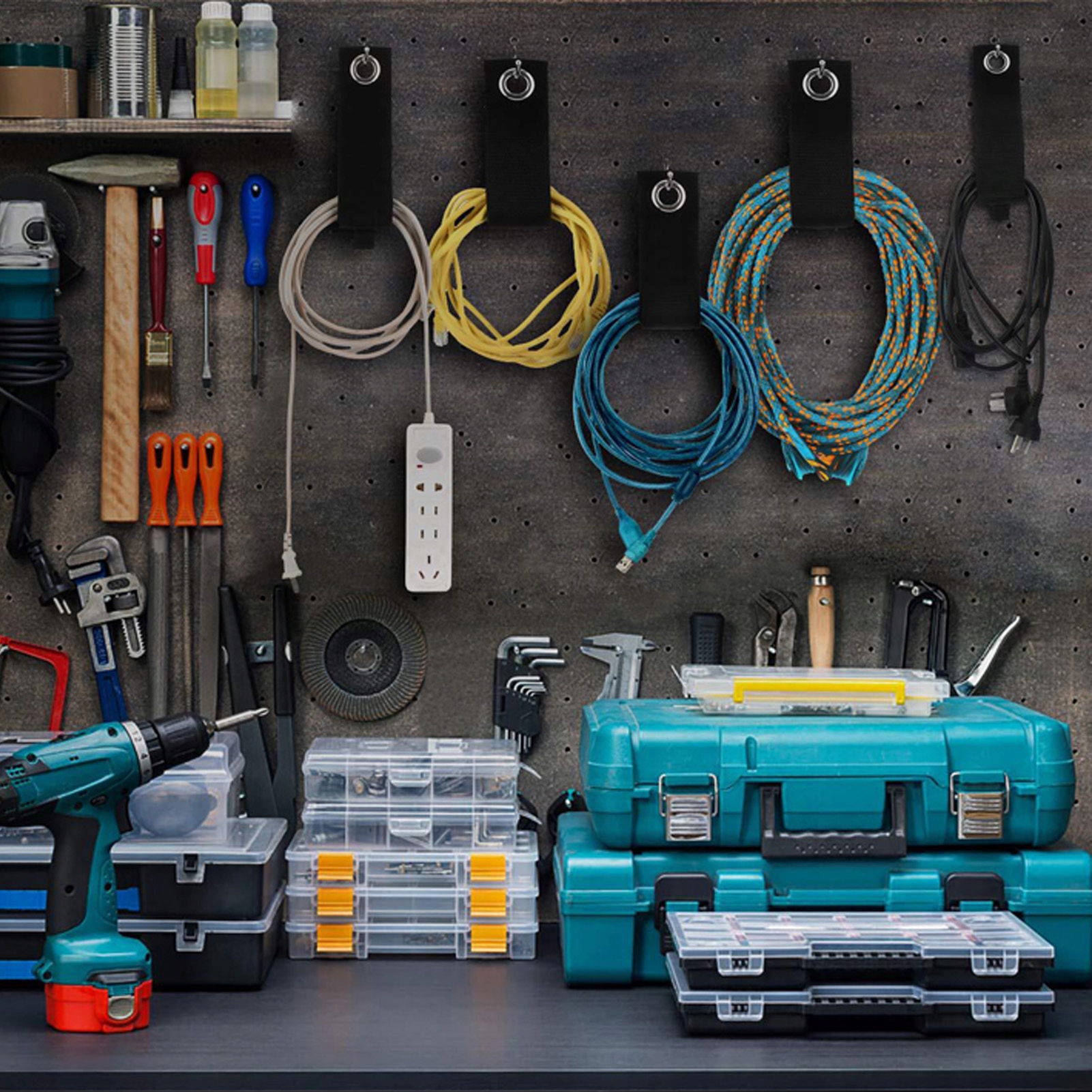 3. Простота в эксплуатации: застежка-липучка позволяет свободно регулировать держатель шнура и быстро организовывать, вешать и хранить все необходимое, а сквозные ремни идеально подходят для крючков для хранения в гараже.