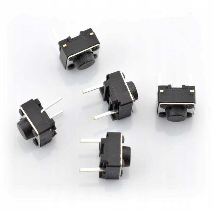 Маленькая моностабильная кнопка сквозного монтажа - THT с двумя штифтами, размер: 6х6 мм, высота: 5 мм.