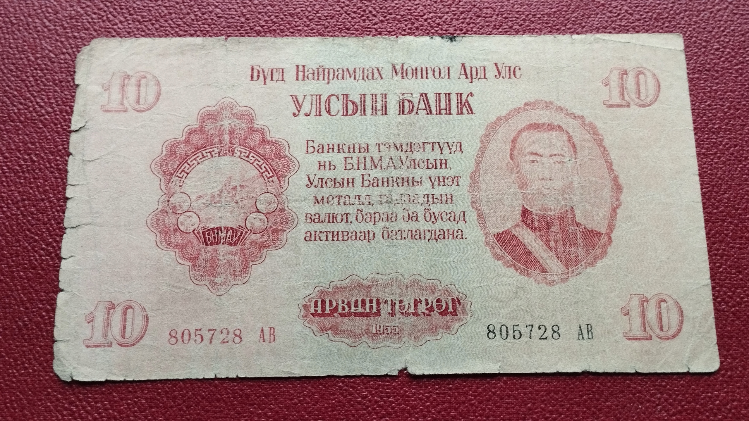 10 ТУГРИК МОНГОЛИЯ 1955 г. 4 класс