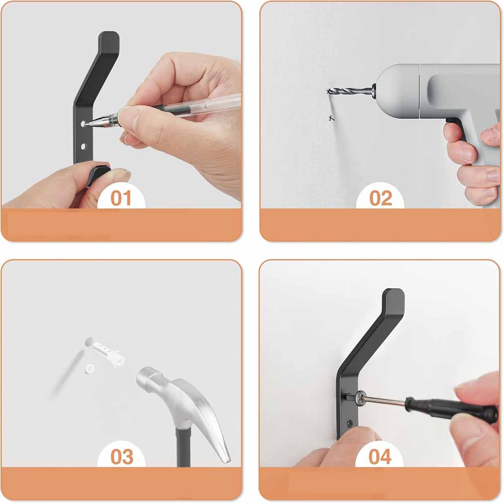 🌟🌟 Сильная грузоподъемность: Используйте отверстия для установки, упрощая процесс установки и облегчая установку. Каждый стеновой крючок спроектирован с 2 операторами монтажа. Монтажные отверстия равномерно распределены, они имеют высокую грузоподъемность и их нелегко упасть.