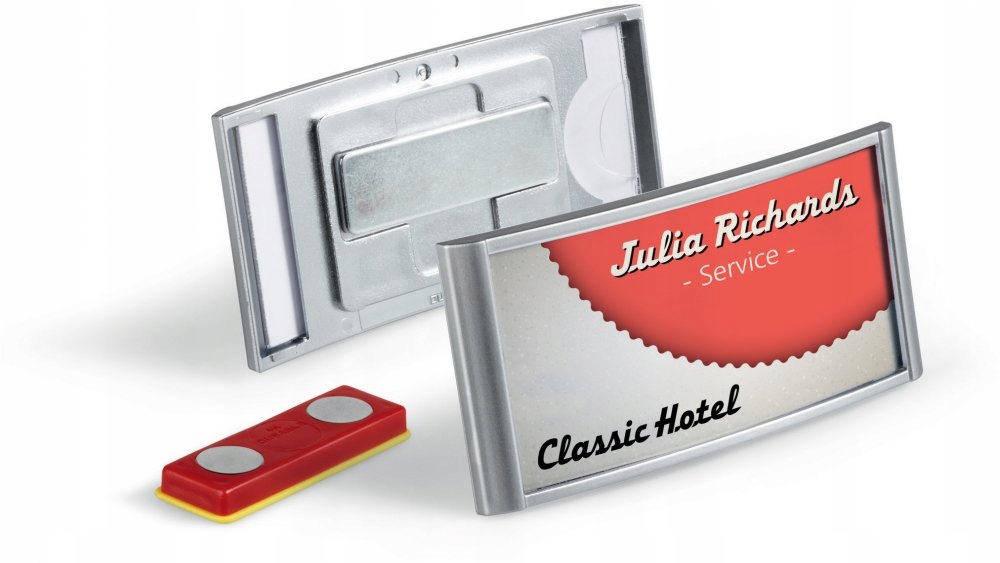 Практичный бейдж с магнитной застежкой - не повреждает даже деликатную одежду.