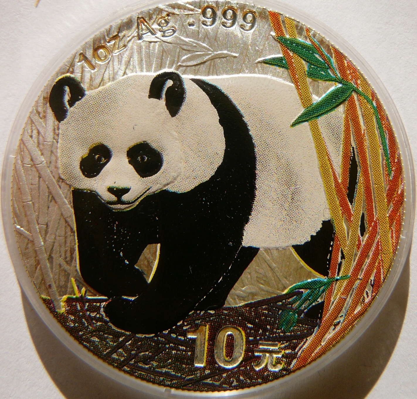 10 юанів КИТАЙ 2002 GREAT PANDA Ag 999 Oz COLOR
