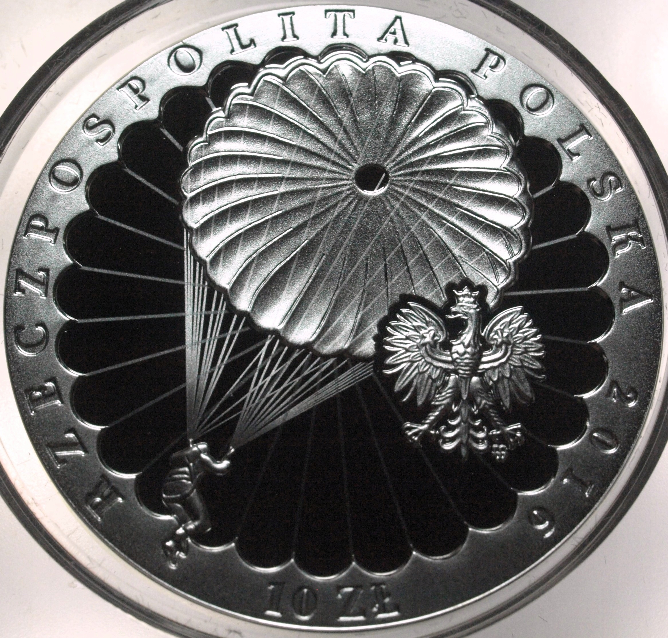 10 zł złotych 2016 75 r pierwszego zrzutu Cichociemnych SREBRO