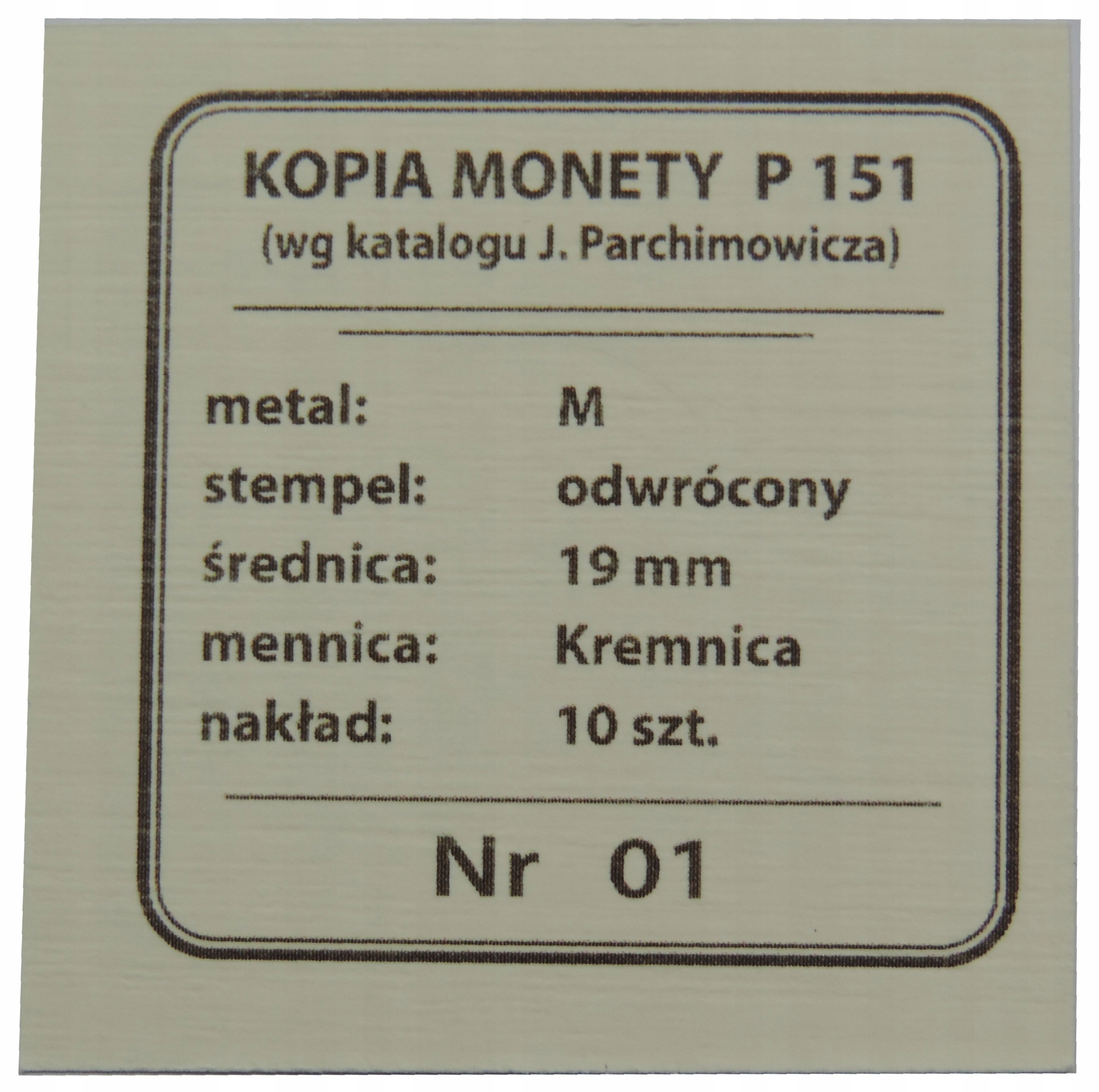 Предметом аукциона является копия пруф-монеты межвоенного периода Второй Польской Республики из уникального набора, выпущенного Wydawnictwo NEFRYT Яном Пархимовичем:
