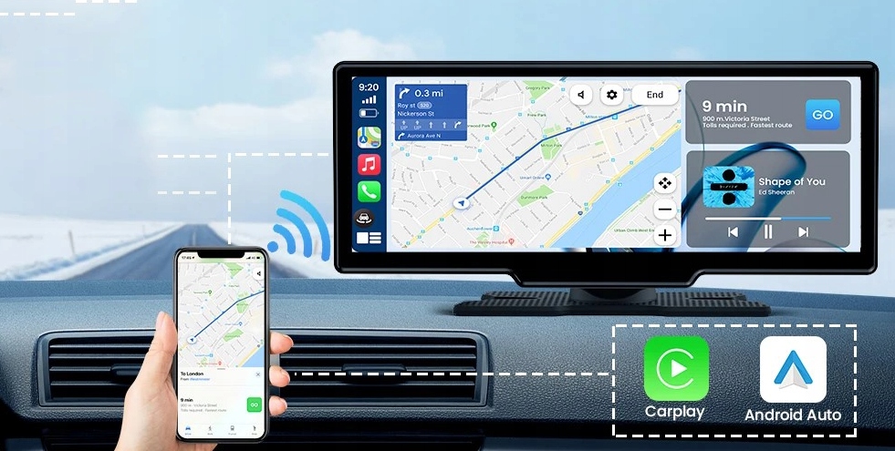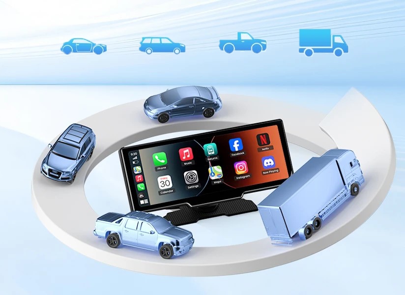 Портативный экран CarPlay оснащен самостоятельными кронштейнами для безопасного размещения на приборной панели, которые можно легко удалить, когда они не используются. Служив ассортимент 9-32 В, подходит для автомобилей, фургонов, трейлеров, мотомов, грузовиков и караванов