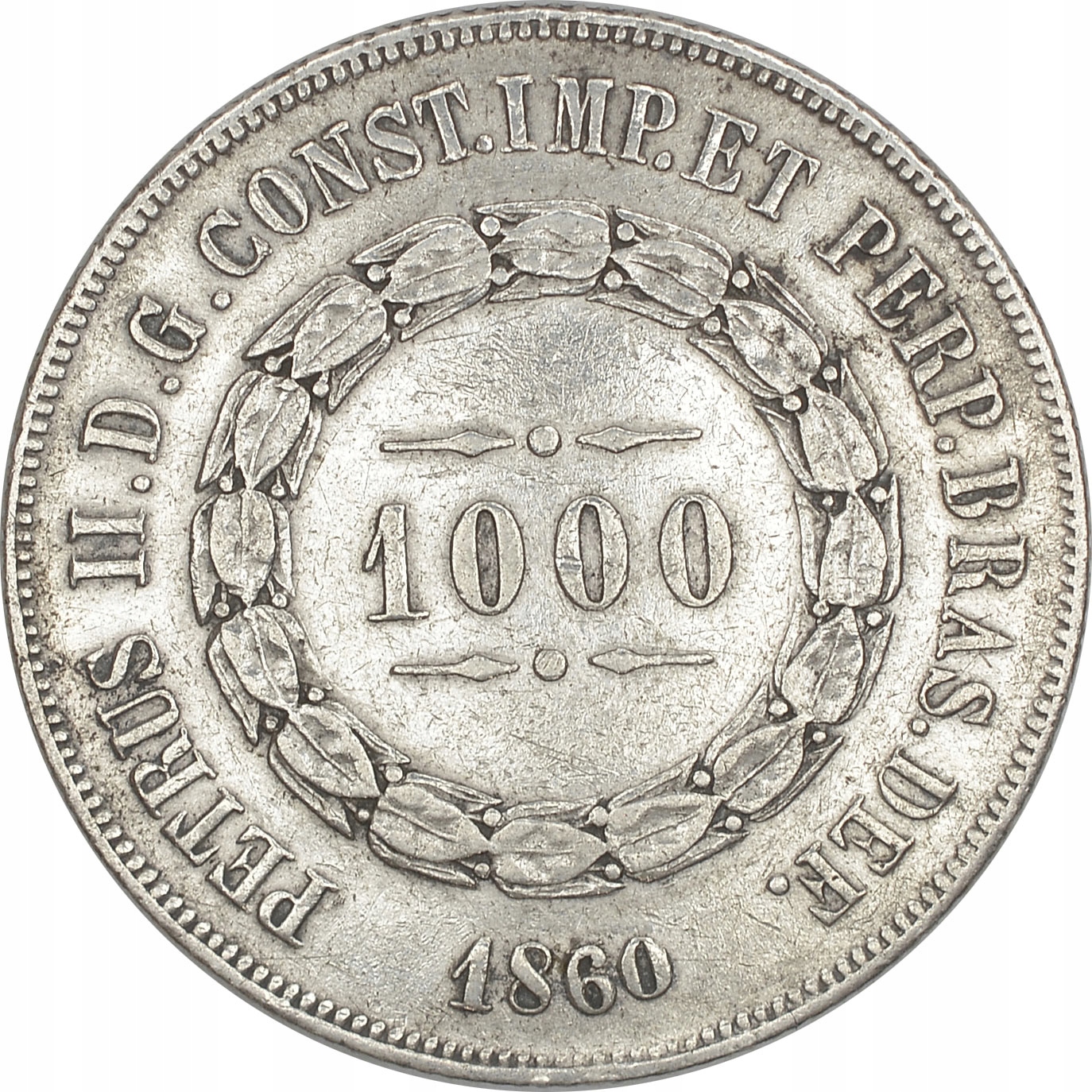 10.БРАЗИЛІЯ, ПЕТРО II, 1 000 REIS 1860