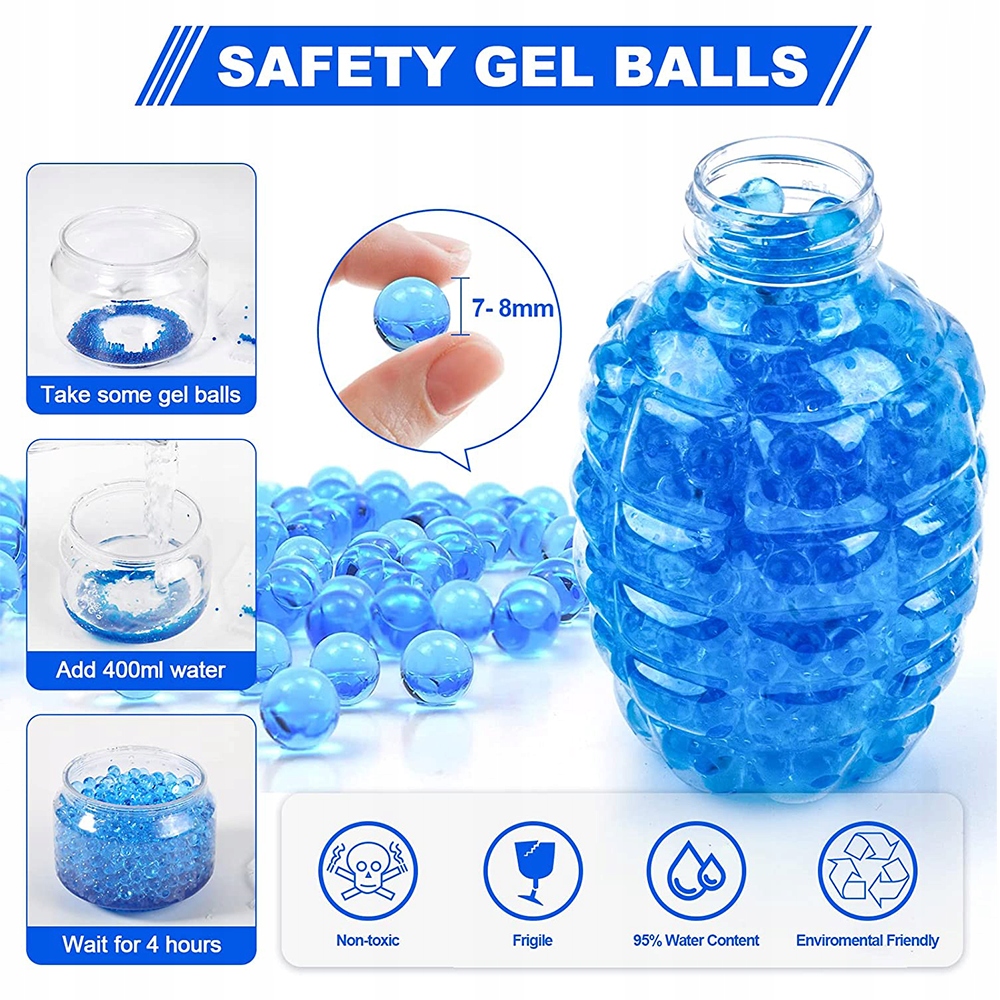 Это идеальный инструмент для использования в огнестрельном оружии. После пребывания в воде в течение четырех часов действие гелевых жемчужин будет непрерывно всплывать на высоту до 7-8 мм, что возможно с бластерами для водного поло. Игра в быструю стрельбу дает детям и взрослым захватывающие результаты. Подходит для командных сражений и членов семьи.