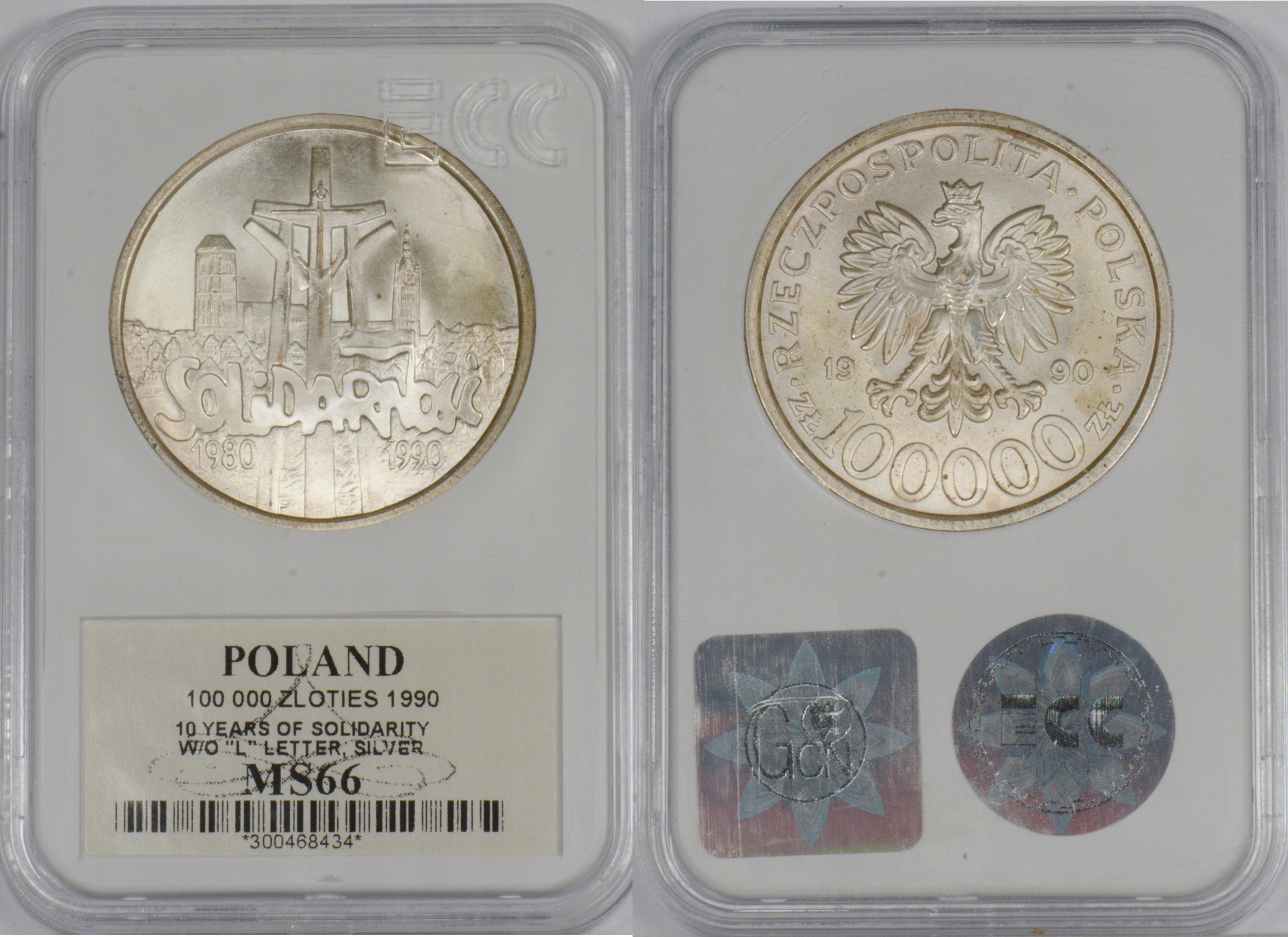 100 000 Zlotys 1990 Soliadrity - тип B MS66 13,08