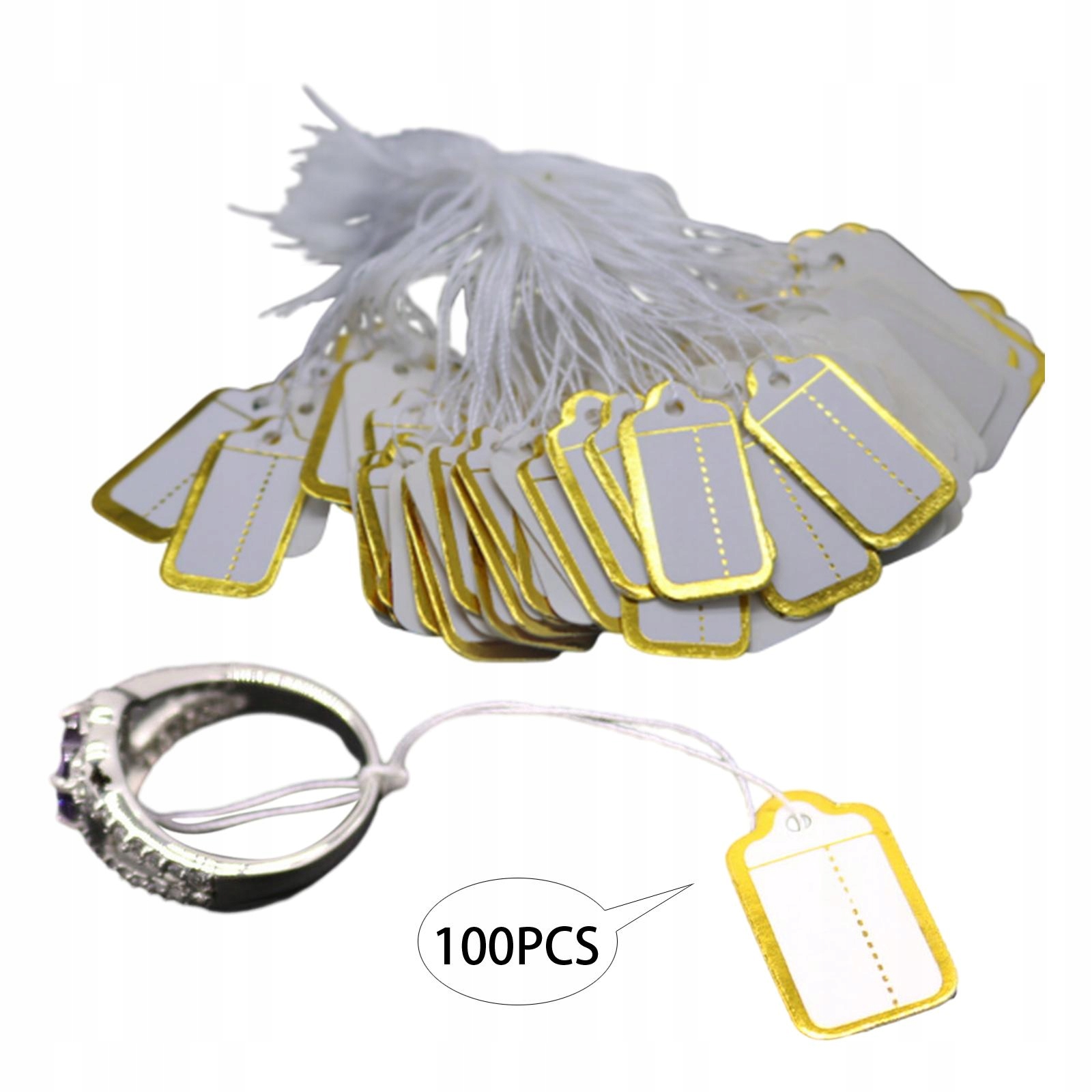 100 цінників із прикріпленими шнурками для демонстрації одягу