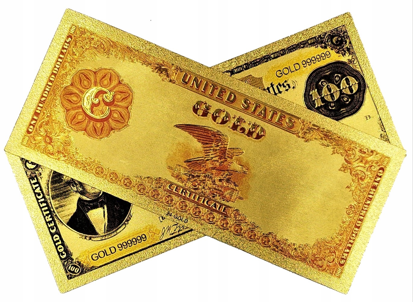 Точная копия американской банкноты первой серии 1882 года, изготовленная из ПВХ и покрыта золотой фольгой.
