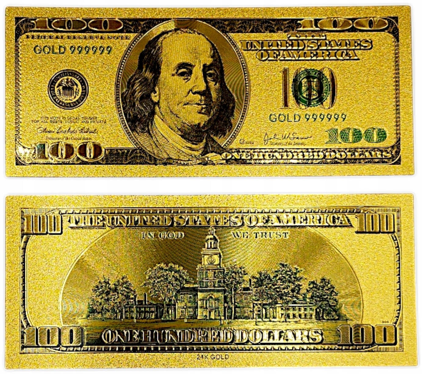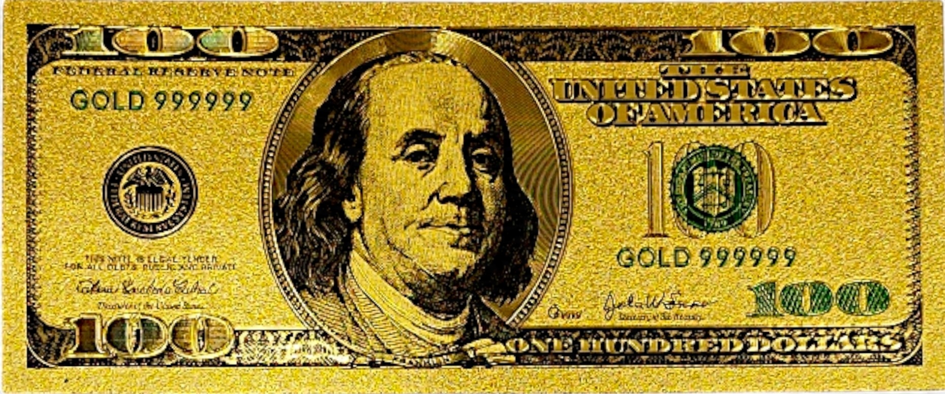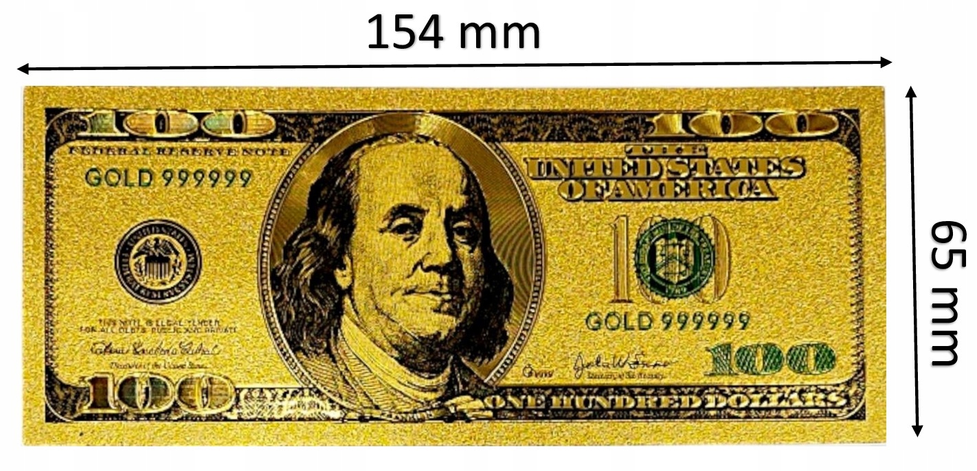 КОПИЯ БАНКНОТЫ 100 ДОЛЛАРОВ США ИЗ ПОЗОЛОЧЕННОГО ПВХ
