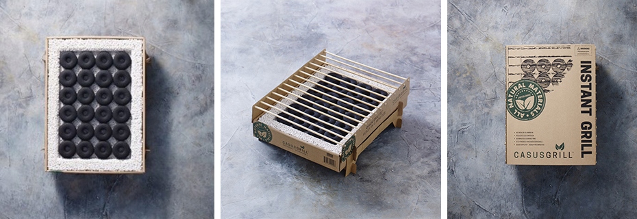 Дизайн гриля был элегантным. Несмотря на то, что это одноразовое решение, это не значит, что оно должно быть уродливым и громоздким. Индукционный лавовый камень, древесный уголь, натуральный бамбук и картонная упаковка, которая также является основой гриля. Все удобно, элегантно и весит всего 1 кг