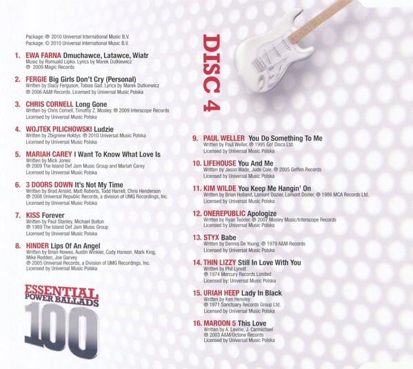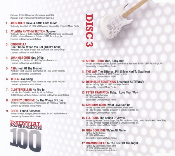Оплачивая «100 ESSENTIAL POWER BALLADS 6 CD BOX COLLECTIONS» данный товар из каталога «Рок» вы можете быть уверены, что после оформления заказа, доставки в Украину, вы получите именно то, что заказывали, в оговоренные сроки и европейского качества.