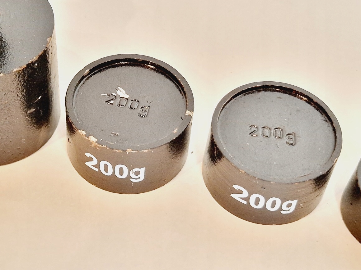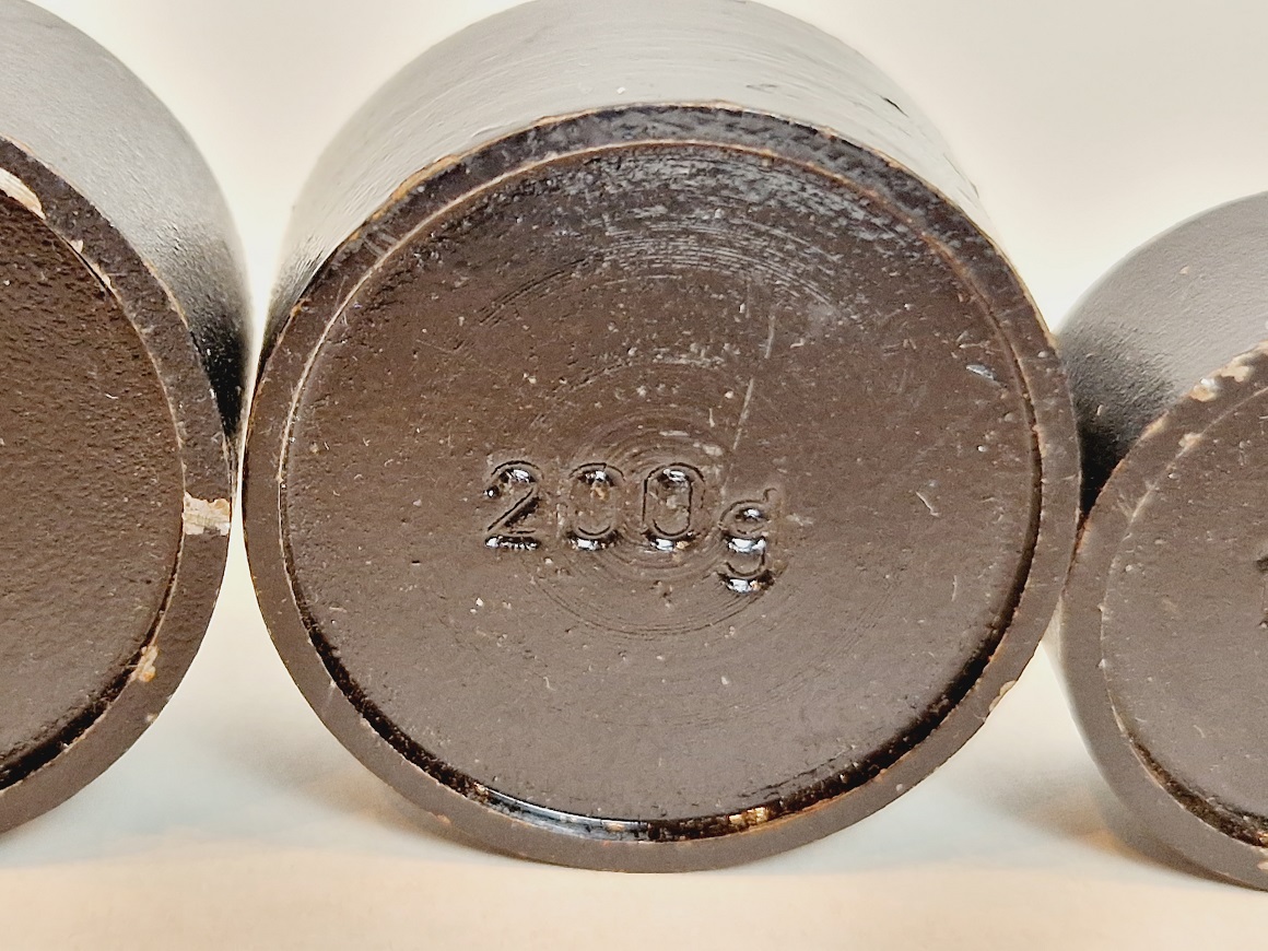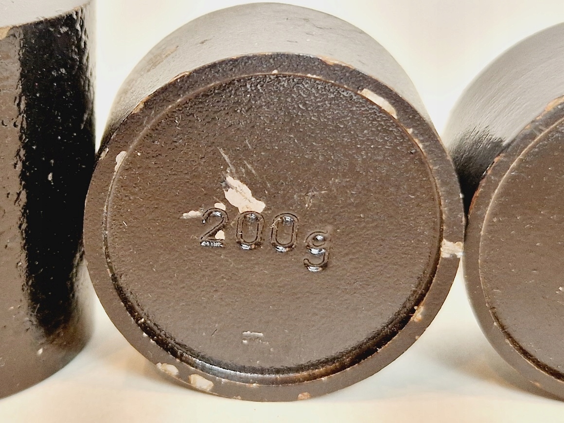 На верхней части гирь (500 г - спереди) имеется четкая маркировка номинала: