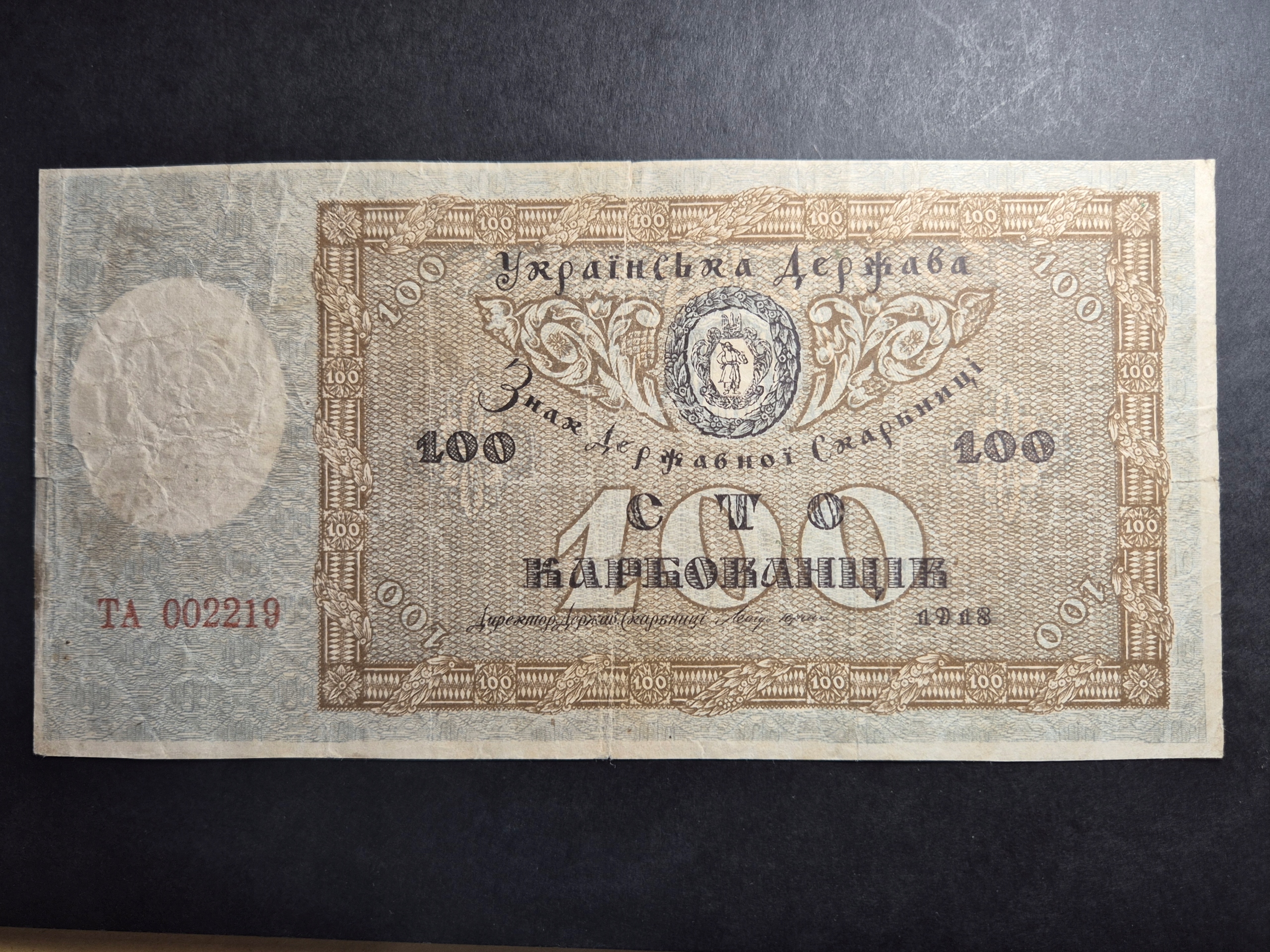 100 карбованцев 1918 года Украина редкий