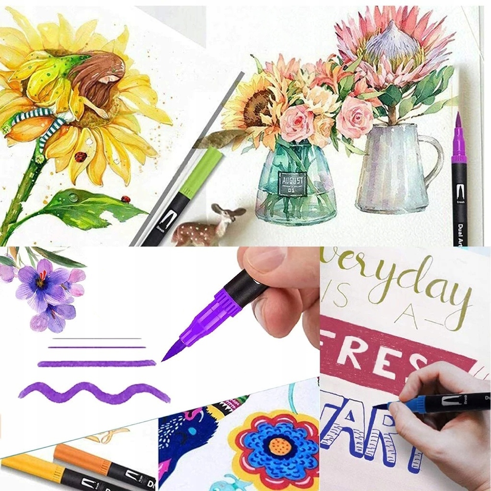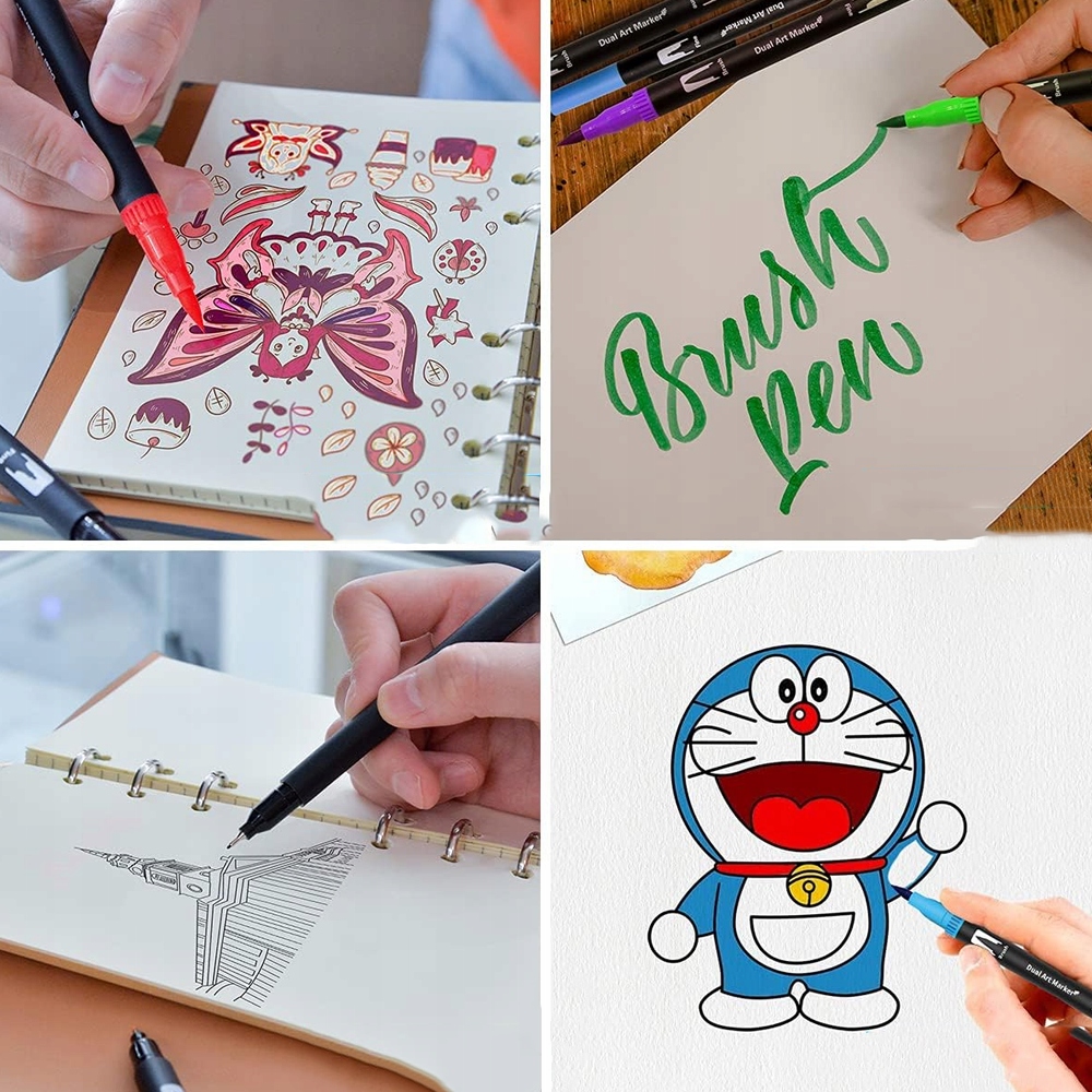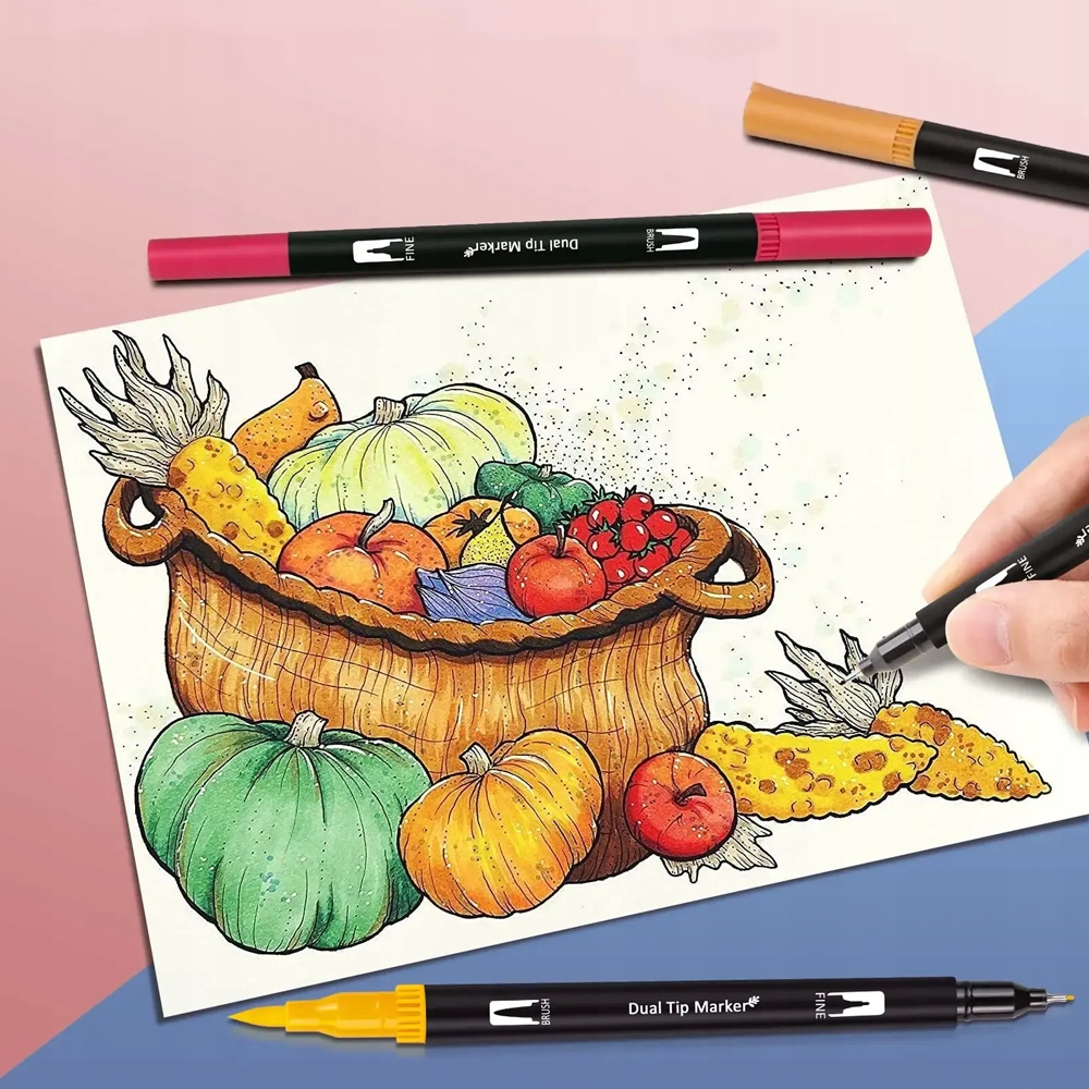 – Двусторонний маркер позволяет легко заменять насадки. Тонкий кончик(0,4 мм) помогает художникам сосредоточиться на деталях, контурировании, набросках и рисовании. Кисть (1–2 мм) позволяет наносить разнообразные мазки и может использоваться для рисования жирных линий, каллиграфии, дизайна, ведения дневника, написания писем, раскрашивания для взрослых и детей и многого другого.