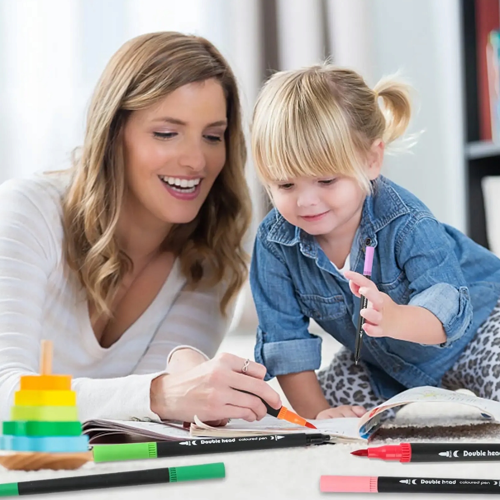 100 цветных маркеров для книжек-раскрасок, не меняют цвет, двусторонняя ручка