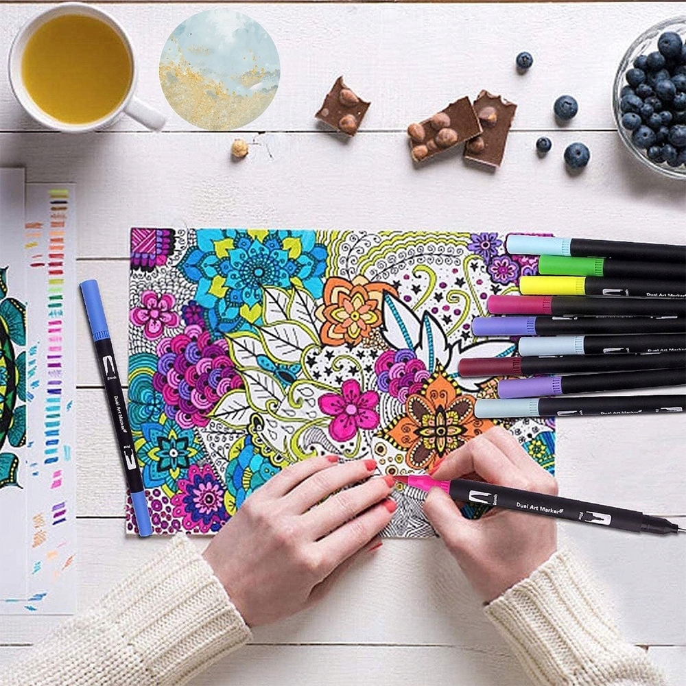 🏳️🌈🏳️🌈🏳️🌈100 уникальных цветов - Каждый набор двусторонних маркеров содержит 100 ярких цветов, каждый маркер отмечен номером цвета и уникальным названием. Чернила изготовлены на водной основе, что удовлетворяет потребности в раскрашивании как взрослых, так и начинающих.