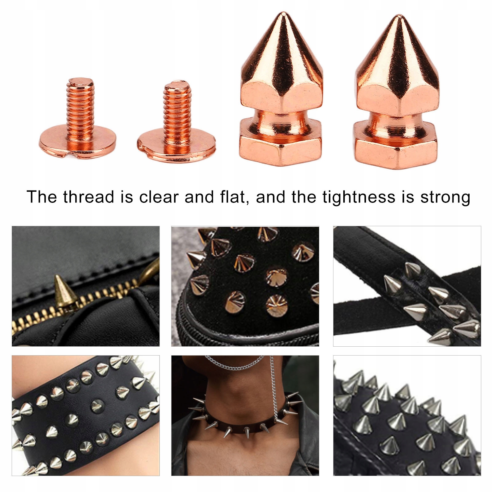 2. Гальваника металла: винтовая заклепка с шипами из розового золота использует процесс гальванического окрашивания, который блестит и не выцветает.