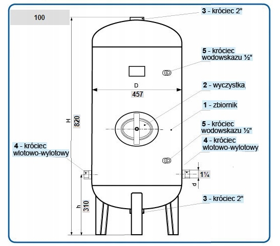 Бак оцинкованный 100л вертикальный 6 бар Wimest