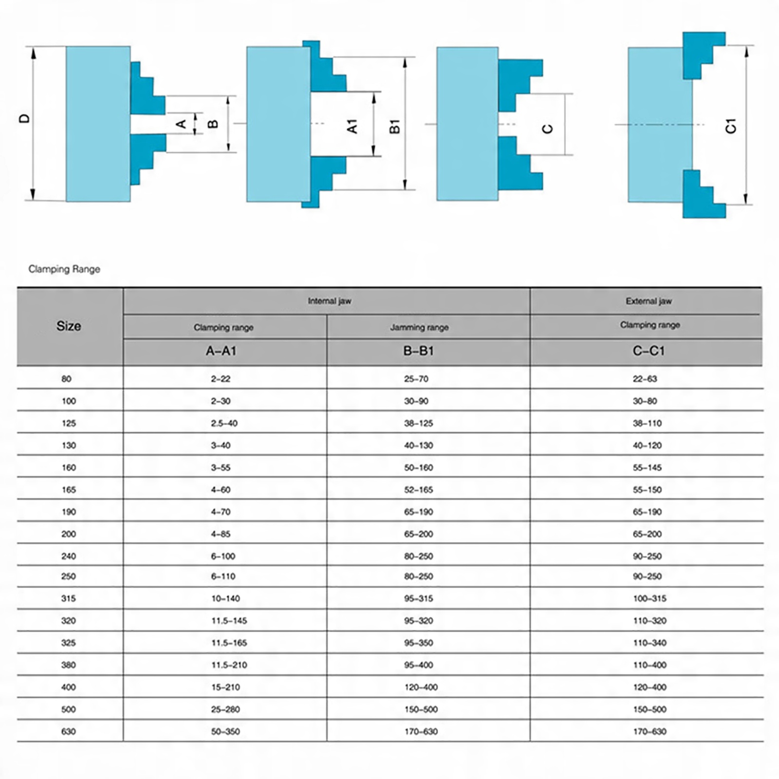 - С 4 перевернутыми губками, регулируемыми индивидуально и независимо. Макс.
