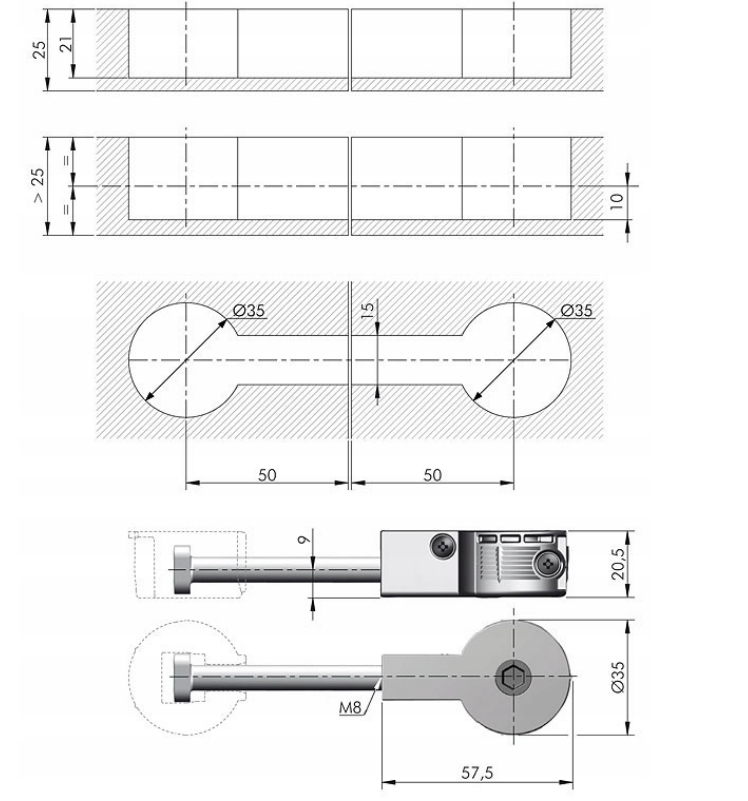 БЫСТРЫЙ Ø35Предназначен для соединения столешниц или мебельных щитов толщиной не менее 25 мм.