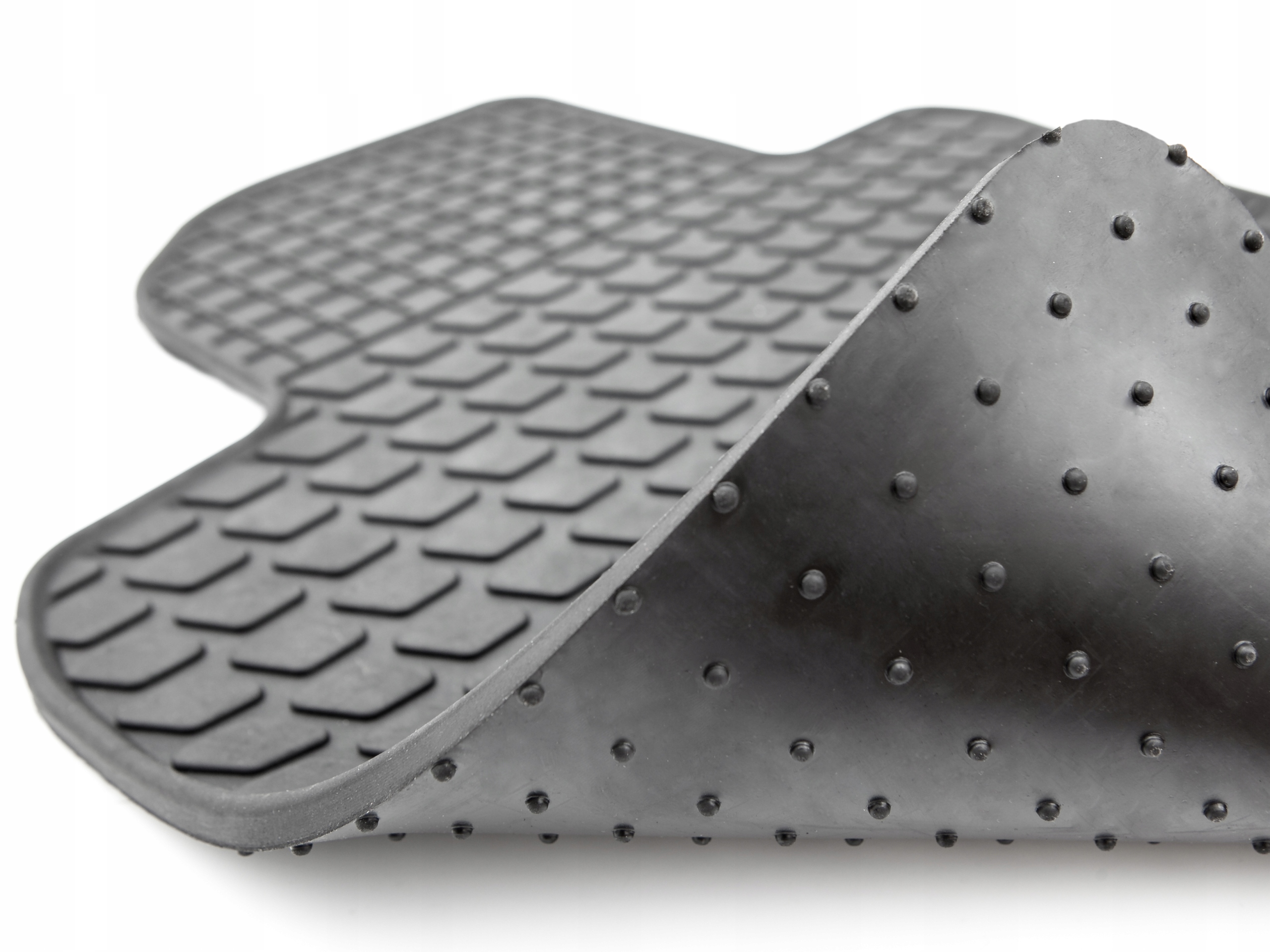 Коврики изготовлены из тщательно отобранной резиновой смеси, разработанной специально для производства автомобильных ковриков. Это делает их устойчивыми к истиранию. Степень соответствия формы оригинальным коврикам составляет 100%, благодаря чему они идеально прилегают друг к другу, что существенно защищает пол от загрязнений и повышает комфорт езды. Дополнительную защиту обеспечивают шипы в нижней части коврика, которые не позволяют ему смещаться.