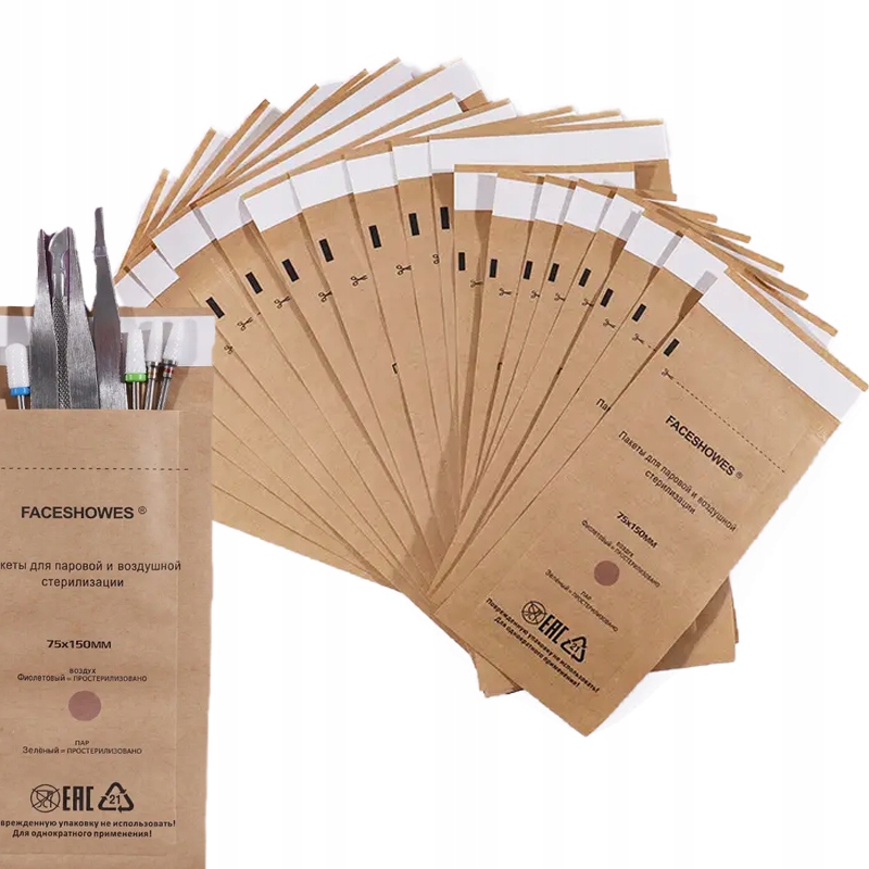 100 ПАПЕРОВИХ СТЕРИЛІЗАЦІЙНИХ МІШКІВ 75 x 150 мм