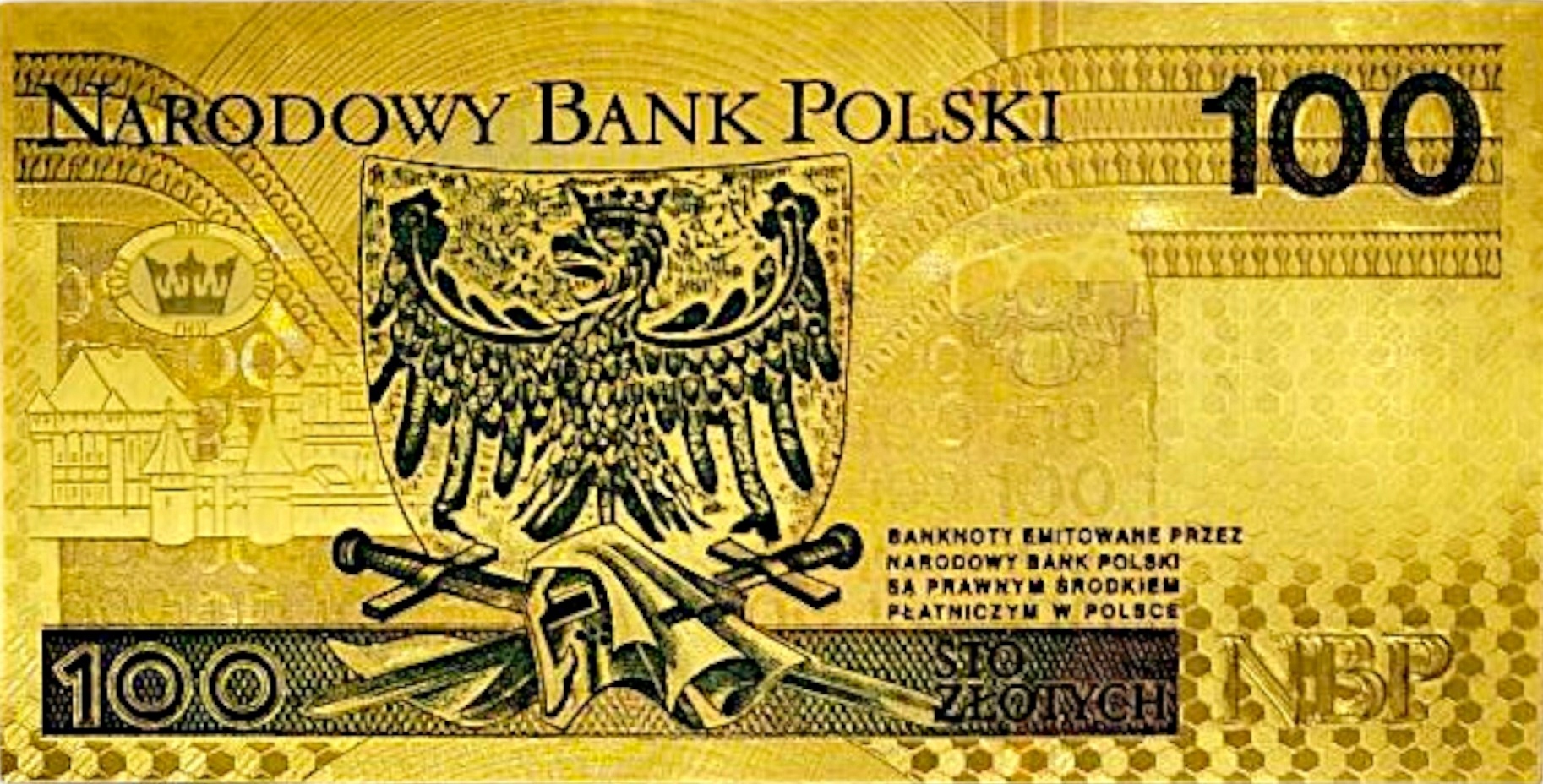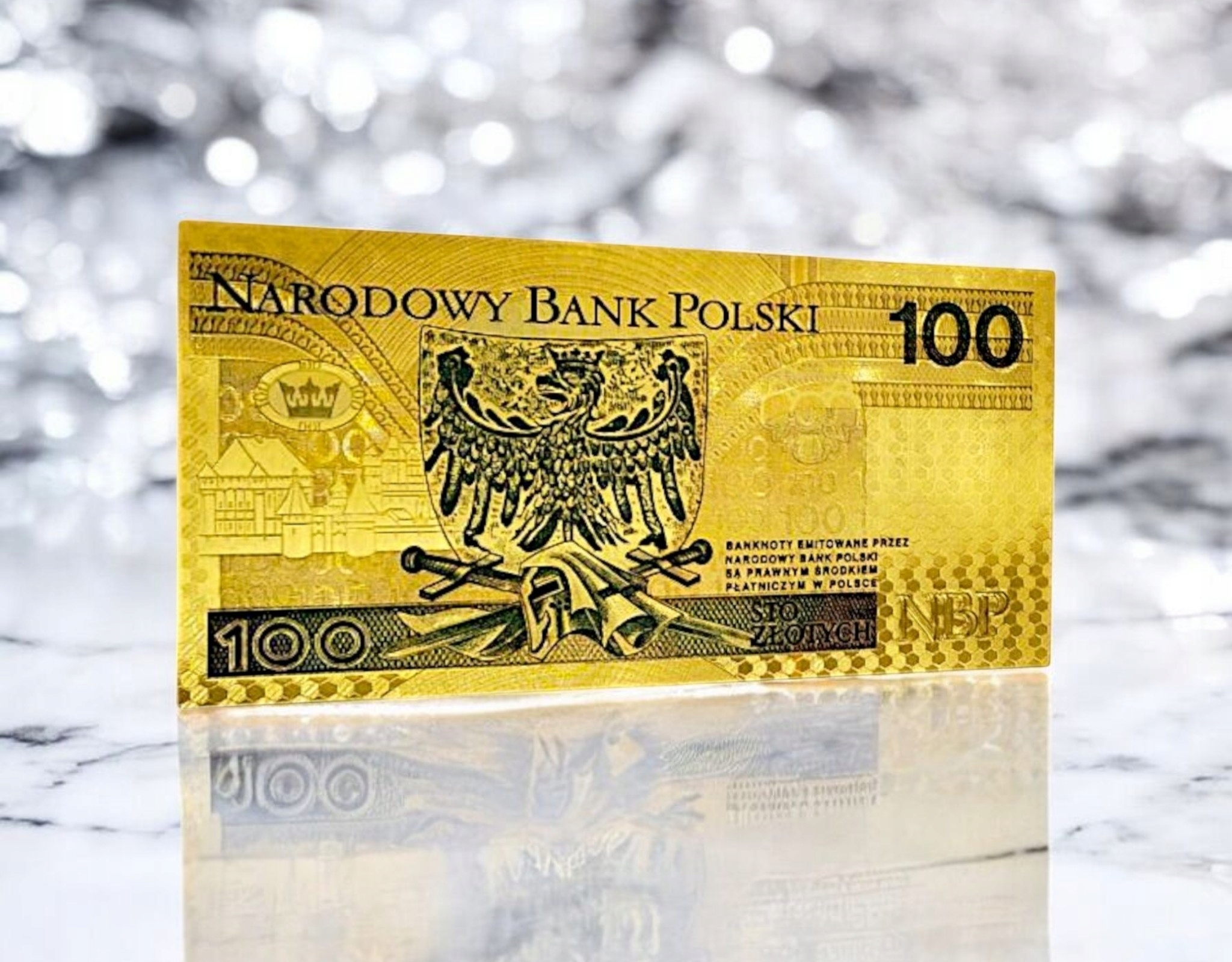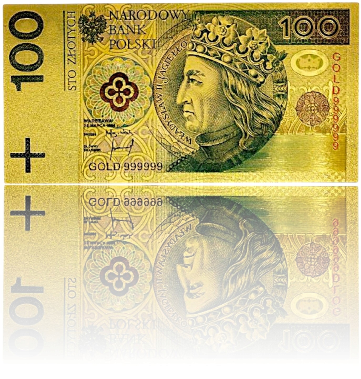 100 PLN WŁADYSŁAW II JAGIEŁŁO Красивая уникальная позолоченная банкнота из ПВХ