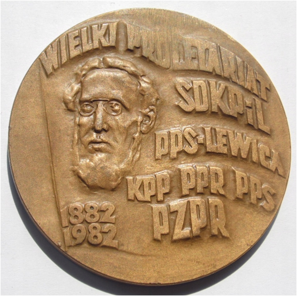 Обратный - на фоне флаги флага на левой головке Людвика Варински, ниже дат 1882 1982, к правой надписи в пяти стихах: Отличный пролетариат sdkpil pps -lewica kpp pps pps pzpr