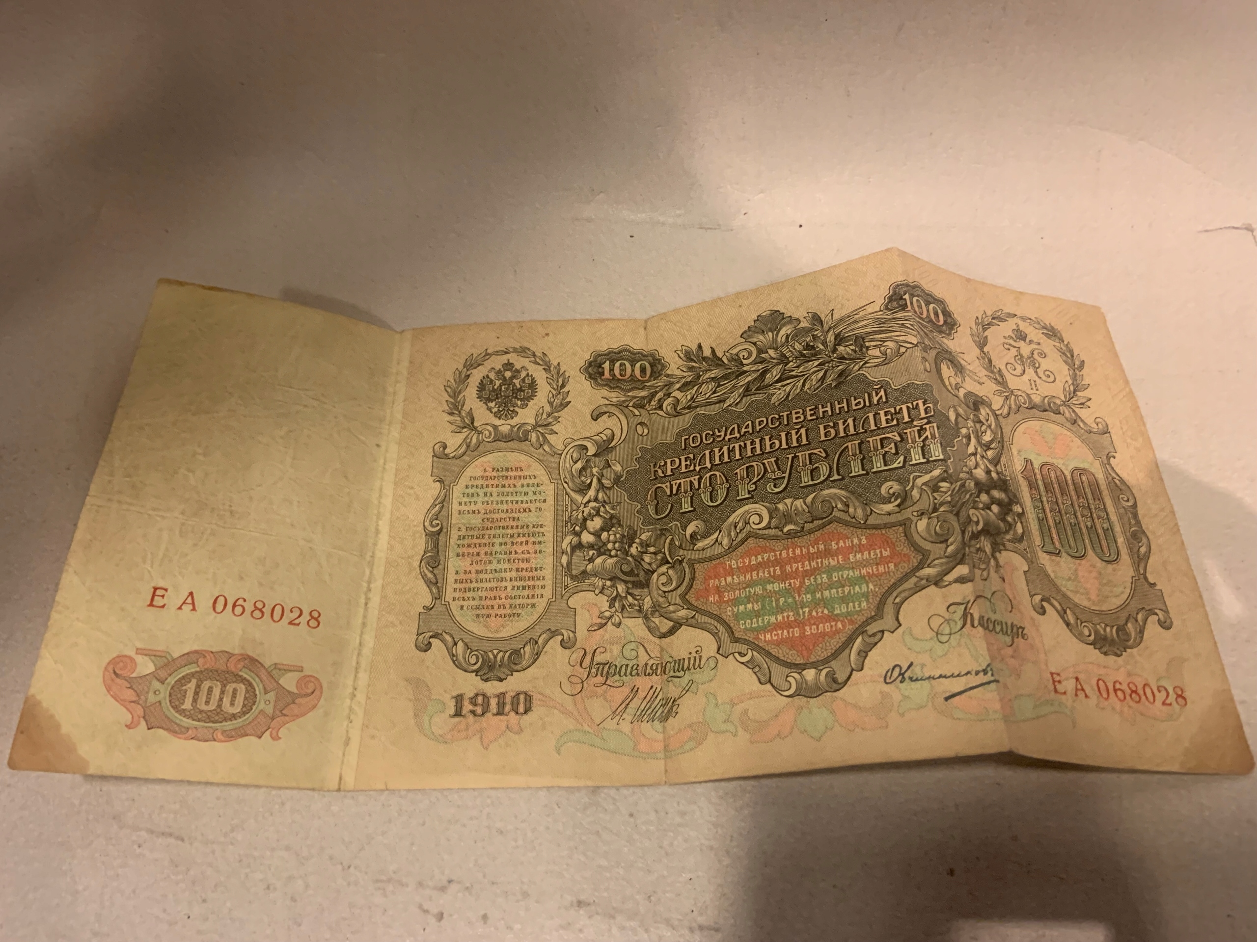 100 РУБЛІВ 1910 EA СЕРІЯ 068028